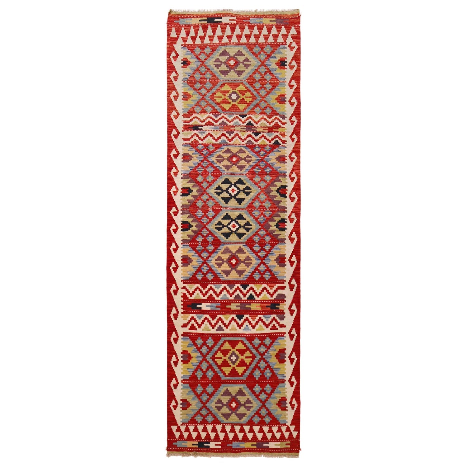 Multi Color ful Flat-Weave Wool Kilim Runner 2' 9" x 9' 7" - No. AL96942
