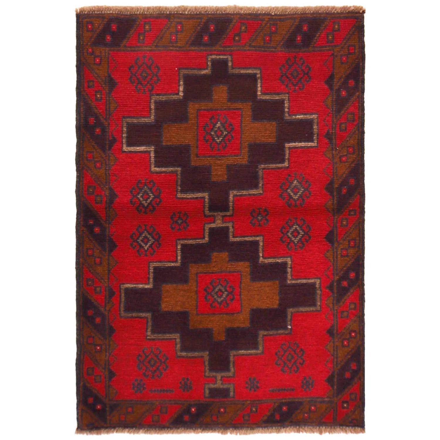A Beautiful and versatile Oriental rug to decorate your home. This Baluchi rug is durable and a good investment. It is in perfect condition. The traditional hand-knotted rug is made up of 100% Wool, and measures 2' 11" x 4' 4". It is a rectangle shape rug. The primary color is red. The collection has the variety of Baluchi carpets and runners. It is currently in stock. Available in geometric pattern and floral design. Free delivery from 4-6 business days.