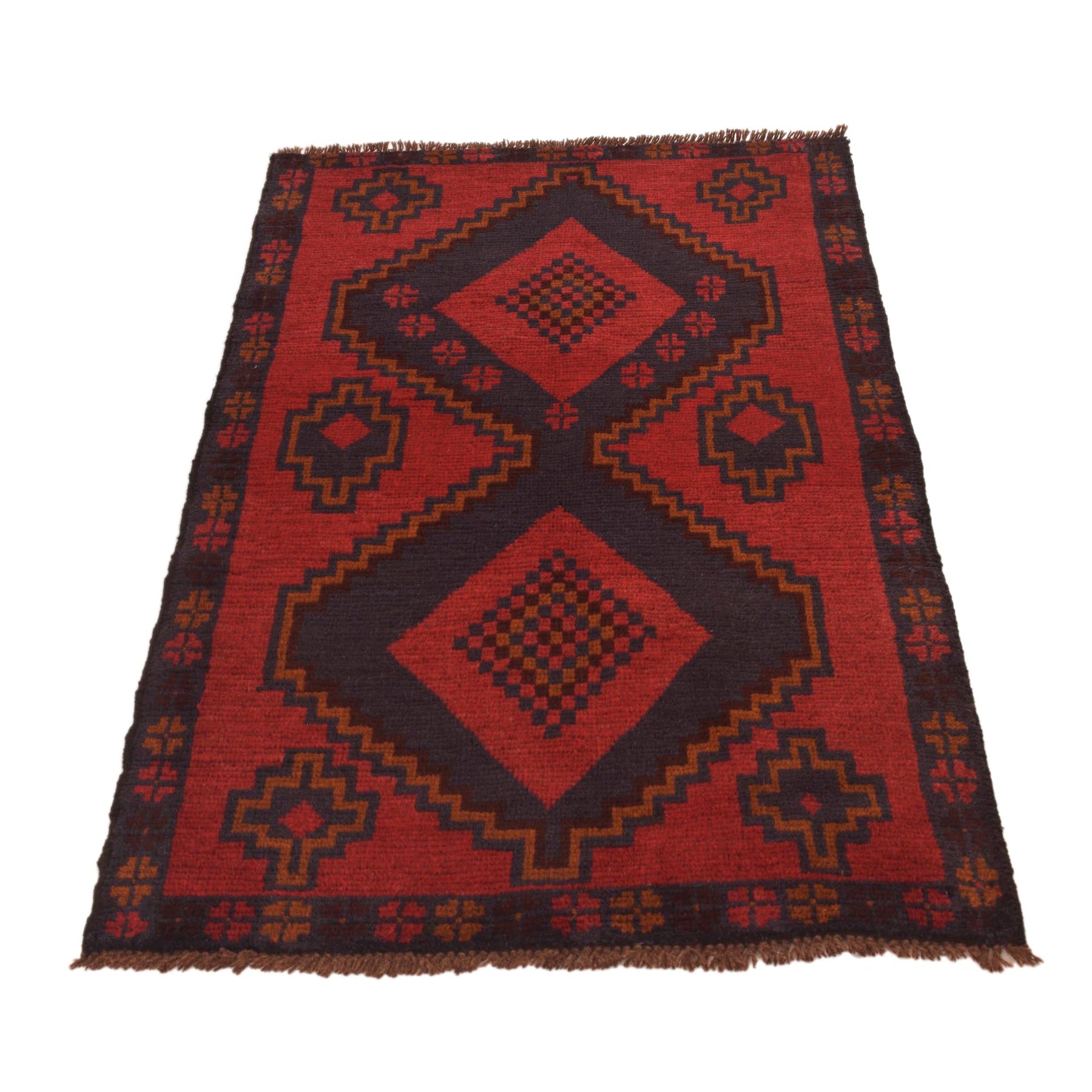 Add authentic tribal character to your home with this handcrafted Baluchi rug from Afghanistan. Woven by skilled Baluch artisans using traditional techniques passed down through generations, this red rectangle rug measures 2' 9" x 4' 7" and is made from 100% wool — a combination prized for its durability and natural sheen.