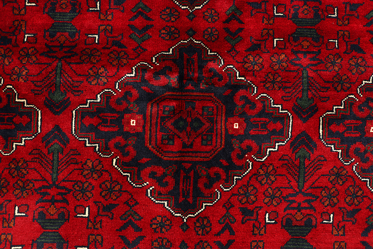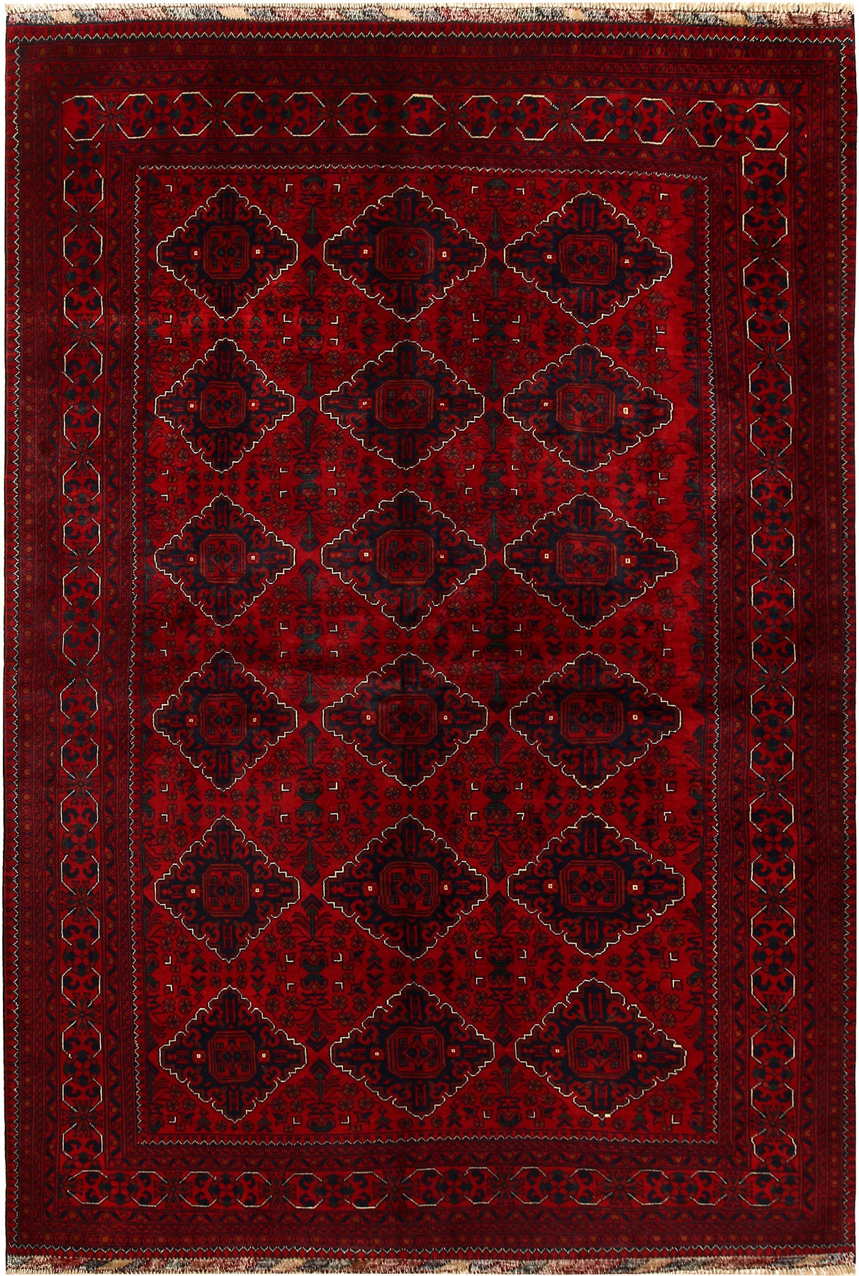 A Beautiful and versatile Oriental rug to decorate your home. This Khal Mohammadi rug is durable and a good investment. It is in perfect condition. The traditional hand-knotted rug is made up of wool, and measures 6' 7" x 9' 6". It is a rectangle shape rug. The primary color is red . The collection has the variety of Khal Mohammadi carpets and runners. It is currently in stock. Available in geometric pattern and floral design. Free delivery from 4-6 business days.