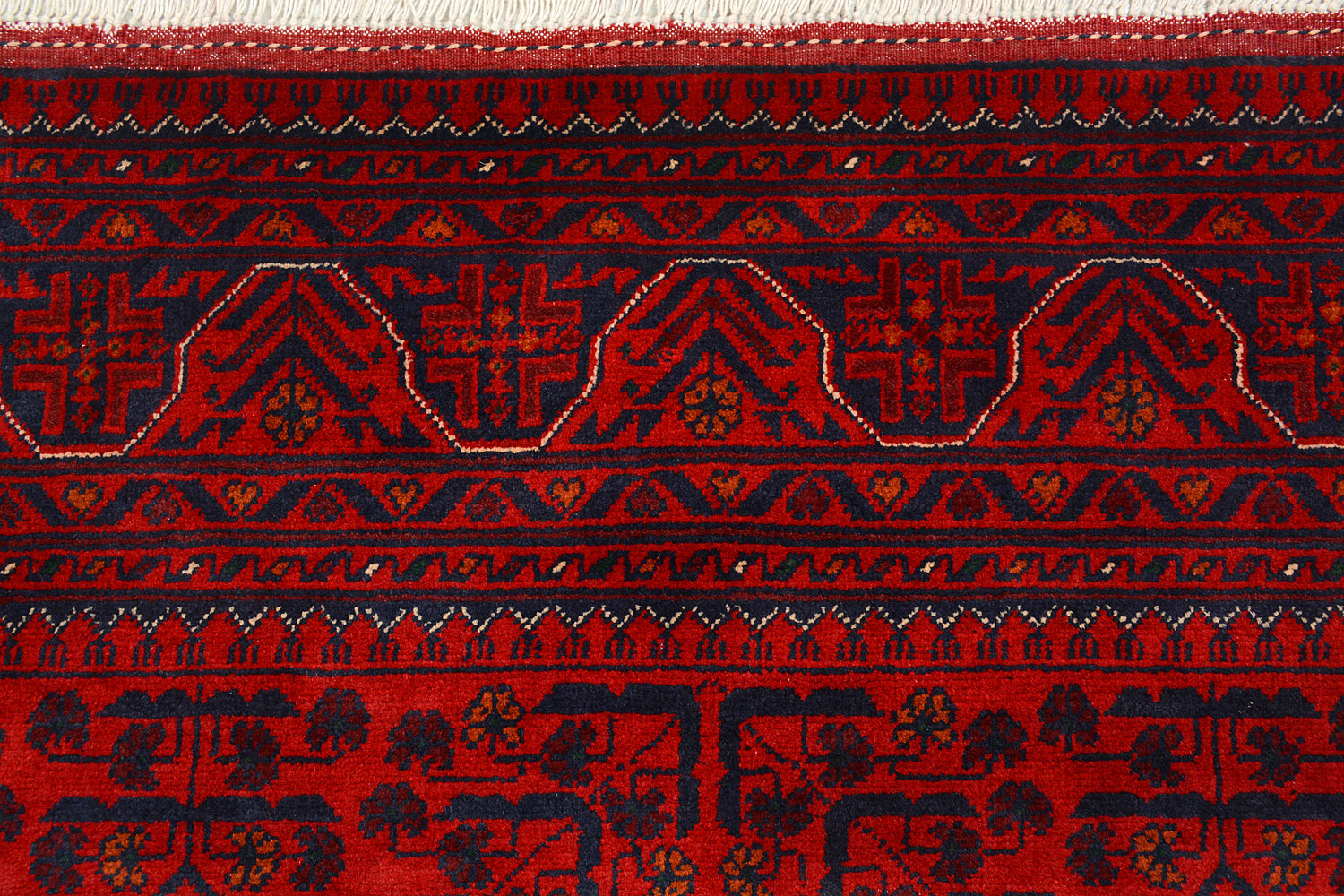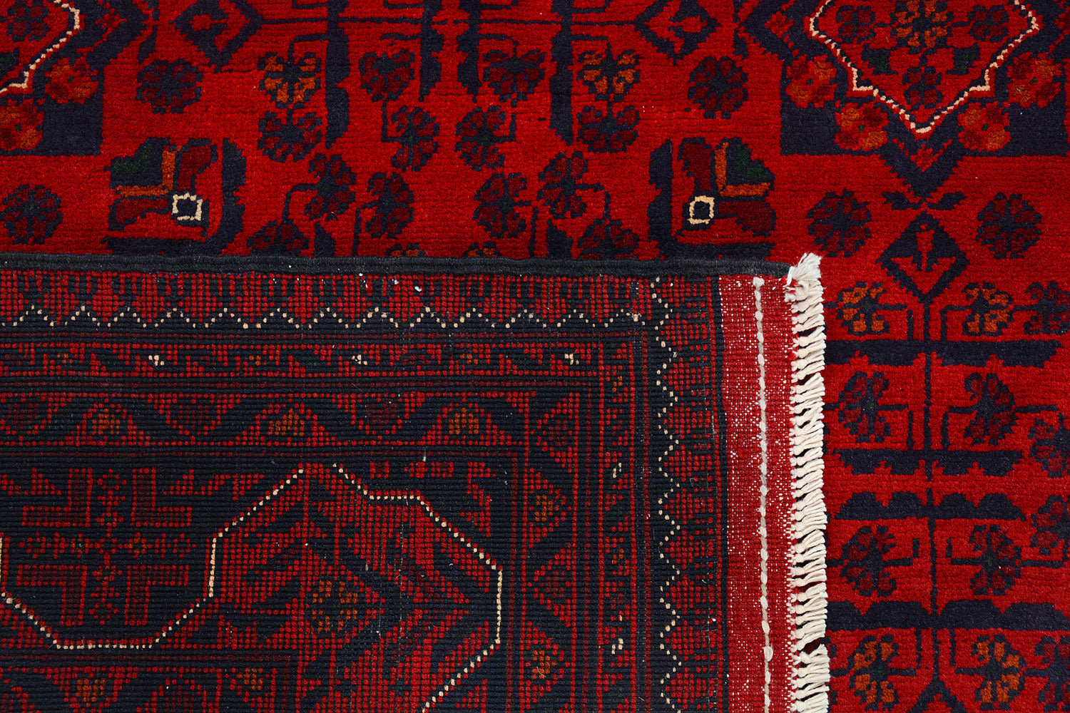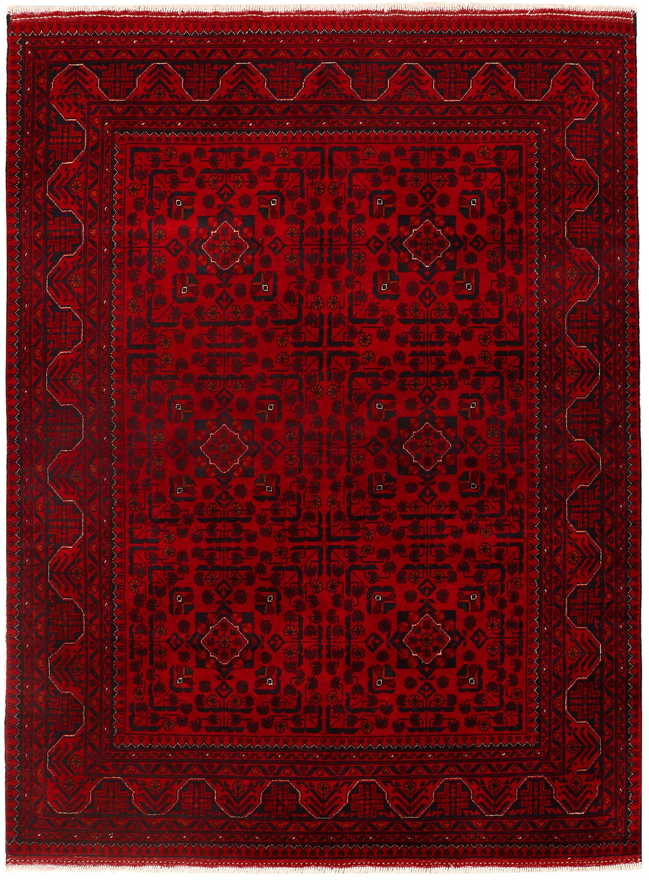A Beautiful and versatile Oriental rug to decorate your home. This Khal Mohammadi rug is durable and a good investment. It is in perfect condition. The traditional hand-knotted rug is made up of wool, and measures 4' 10" x 6' 5". It is a rectangle shape rug. The primary color is red . The collection has the variety of Khal Mohammadi carpets and runners. It is currently in stock. Available in geometric pattern and floral design. Free delivery from 4-6 business days.
