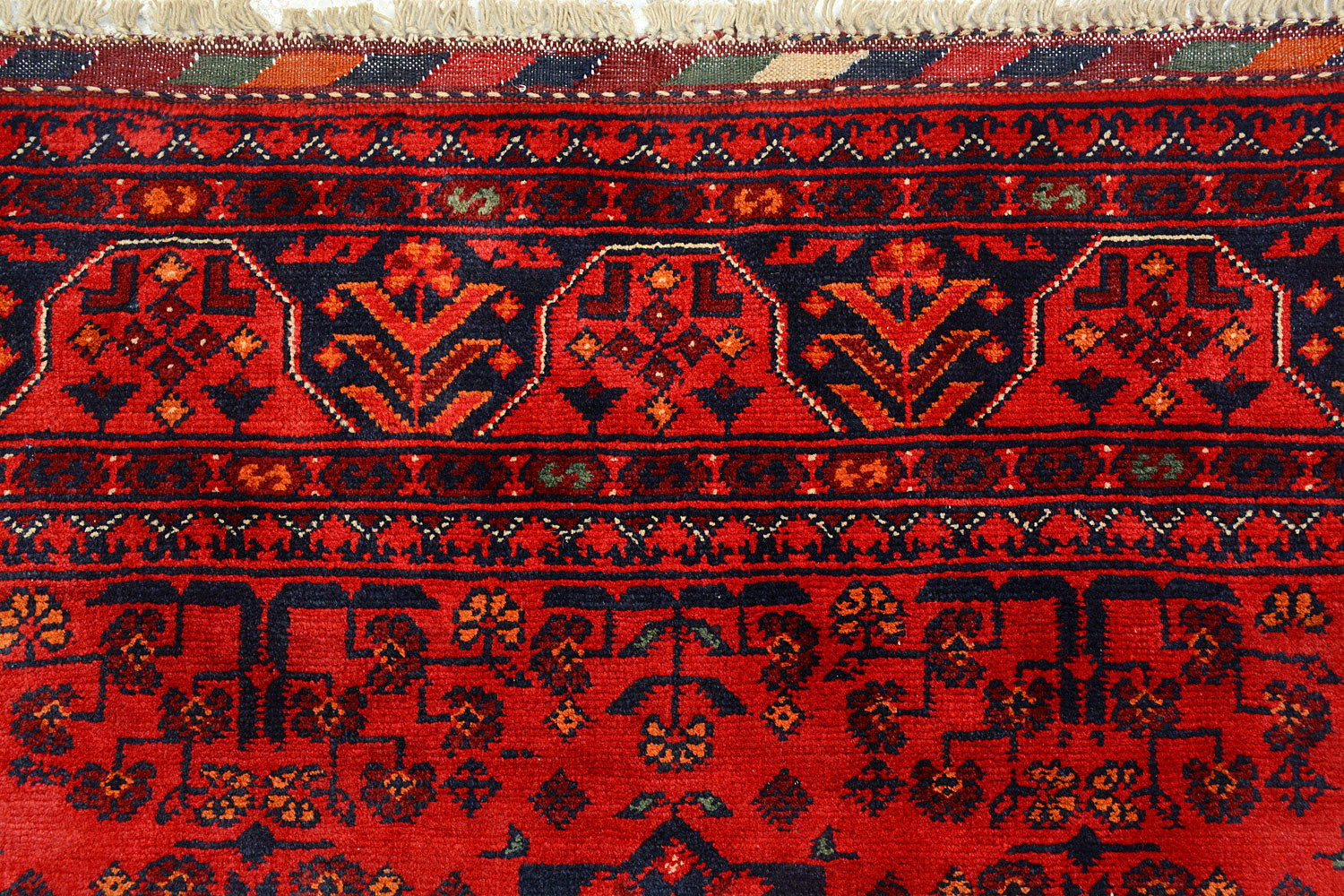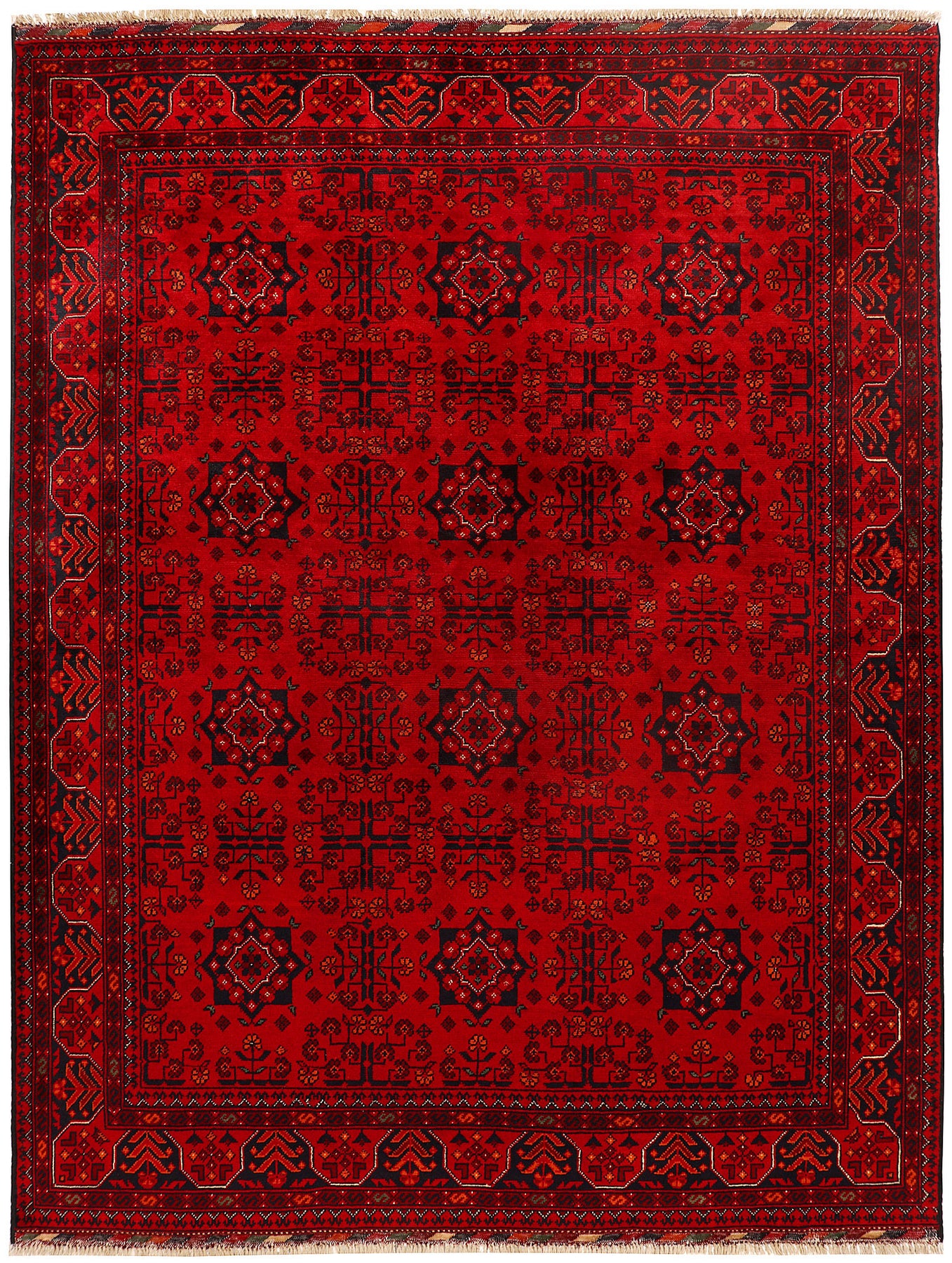 A Beautiful and versatile Oriental rug to decorate your home. This Khal Mohammadi rug is durable and a good investment. It is in perfect condition. The traditional hand-knotted rug is made up of wool, and measures 4' 11" x 6' 4". It is a rectangle shape rug. The primary color is red . The collection has the variety of Khal Mohammadi carpets and runners. It is currently in stock. Available in geometric pattern and floral design. Free delivery from 4-6 business days.