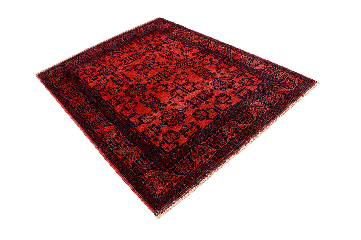 A Beautiful and versatile Oriental rug to decorate your home. This Khal Mohammadi rug is durable and a good investment. It is in perfect condition. The traditional hand-knotted rug is made up of wool, and measures 5' x" 6' 4". It is a rectangle shape rug. The primary color is red . The collection has the variety of Khal Mohammadi carpets and runners. It is currently in stock. Available in geometric pattern and floral design. Free delivery from 4-6 business days.