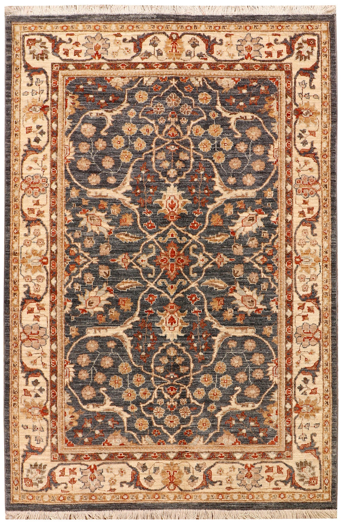 A Beautiful and versatile Oriental rug to decorate your home. This Ziegler rug is durable and a good investment. It is in perfect condition. The traditional hand-knotted rug is made up of wool, and measures 4' x" 6' ". It is a rectangle shape rug. The primary color is grey . The collection has the variety of Ziegler carpets and runners. It is currently in stock. Available in geometric pattern and floral design. Free delivery from 4-6 business days.