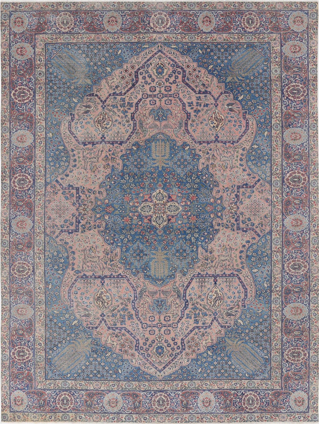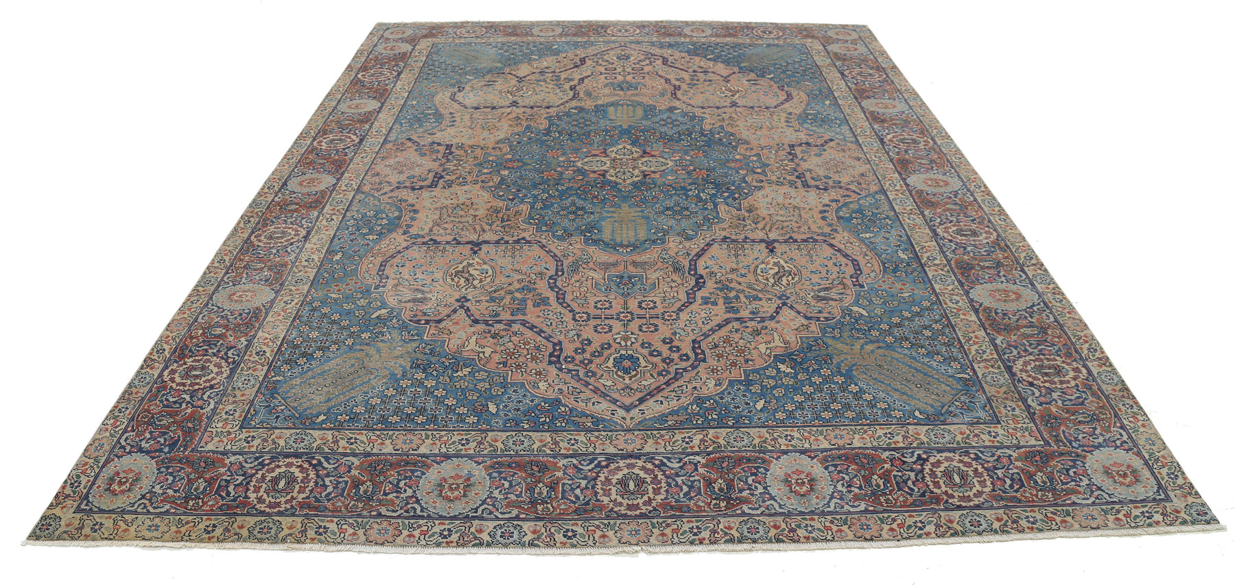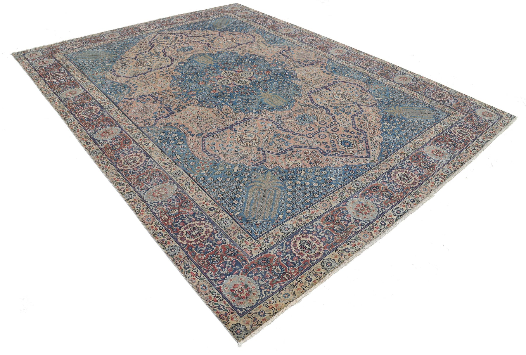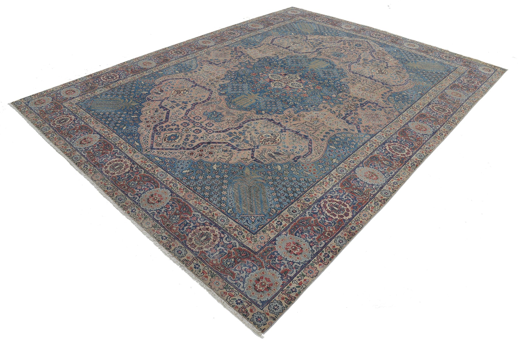 Hand Knotted Antique Persian Tabriz Wool Rug 8' 6" x 11' 3" - No. AT87825