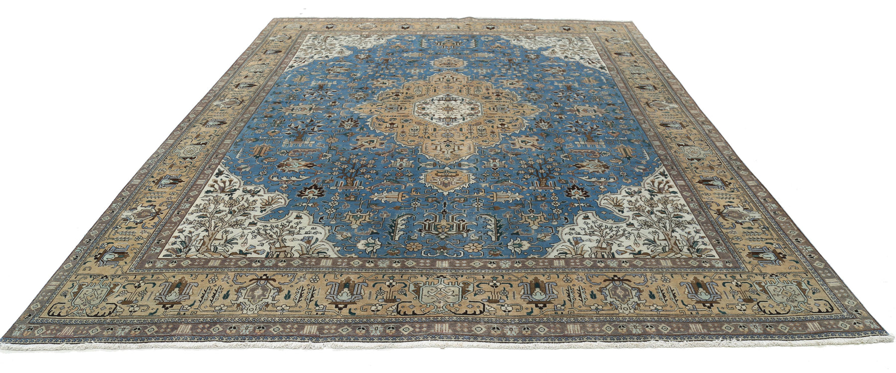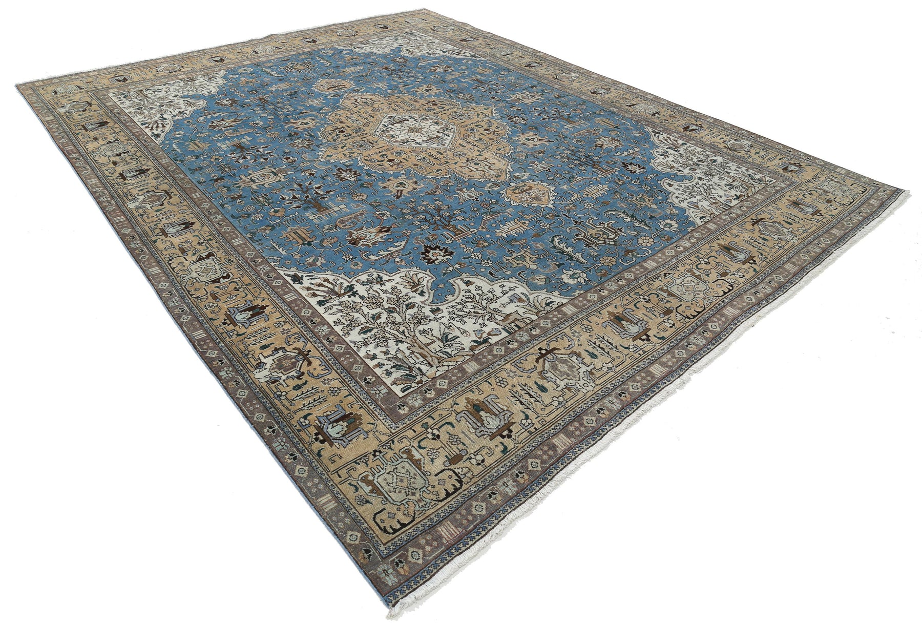 Hand Knotted Antique Persian Tabriz Wool Rug 9' 8" x 12' 1" - No. AT29204