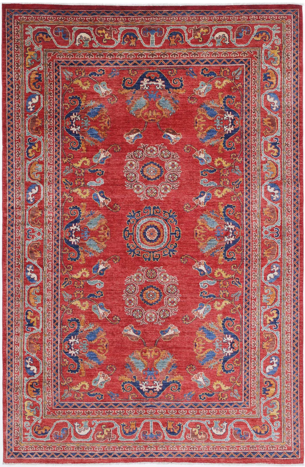 Hand Knotted Nomadic Caucasian Humna Wool Rug 5' 10" x 9' 1" - No. AT38853