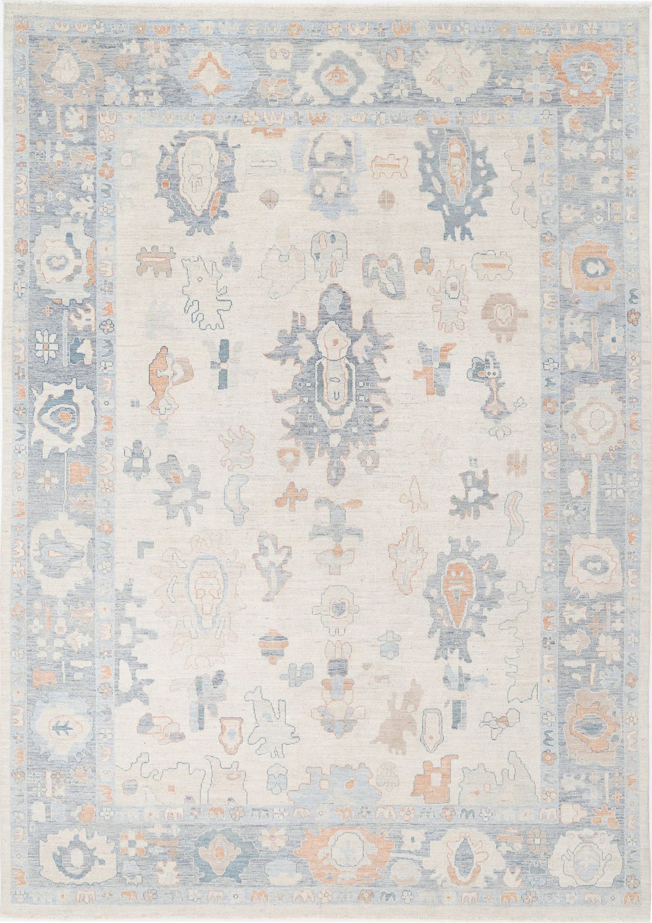 Hand Knotted Oushak Wool Rug 9' 10" x 13' 8" - No. AT71256