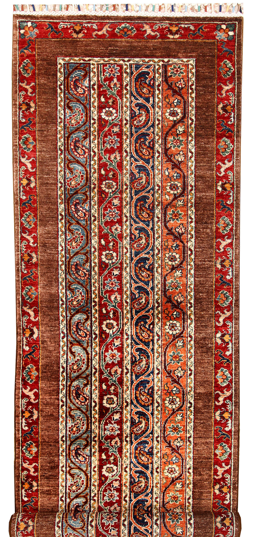 A Beautiful and versatile Oriental rug to decorate your home. This Shawl rug is durable and a good investment. It is in perfect condition. The traditional hand-knotted rug is made up of wool, and measures 2' 7" x 8' ". It is a runner shape rug. The primary color is multi-colored . The collection has the variety of Shawl carpets and runners. It is currently in stock. Available in geometric pattern and floral design. Free delivery from 4-6 business days.