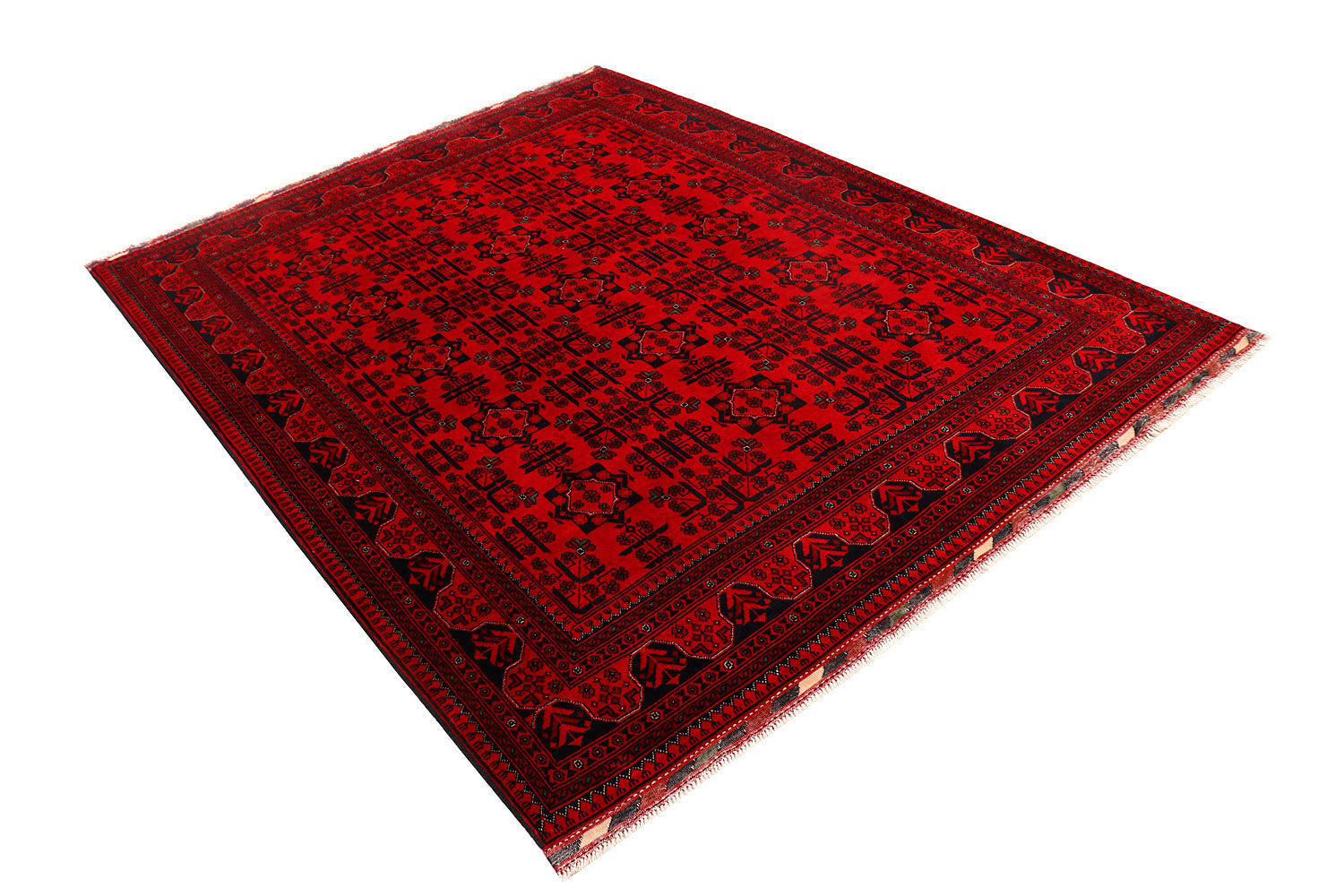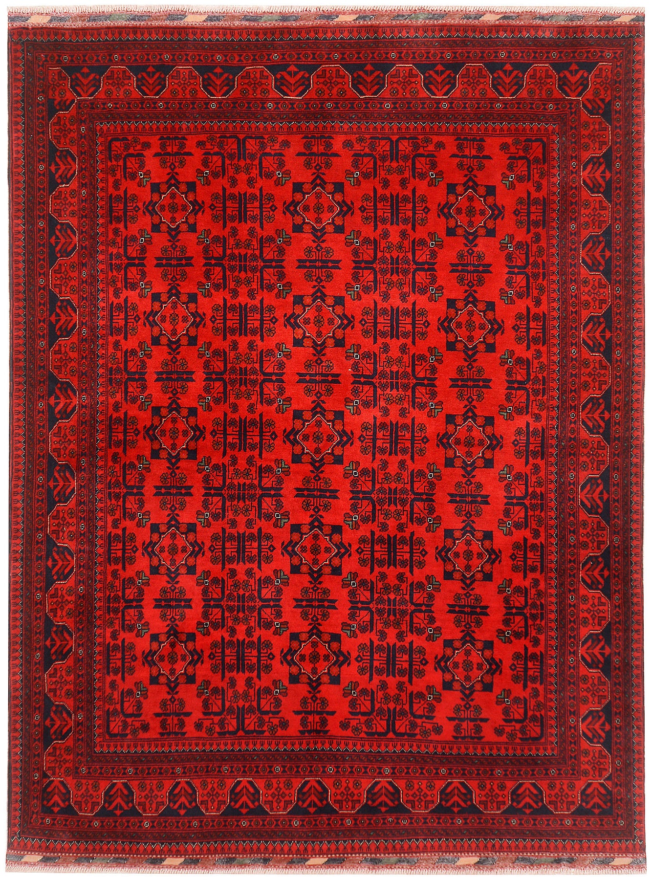 A Beautiful and versatile Oriental rug to decorate your home. This Khal Mohammadi rug is durable and a good investment. It is in perfect condition. The traditional hand-knotted rug is made up of wool, and measures 5' 11" x 7' 8". It is a rectangle shape rug. The primary color is red . The collection has the variety of Khal Mohammadi carpets and runners. It is currently in stock. Available in geometric pattern and floral design. Free delivery from 4-6 business days.