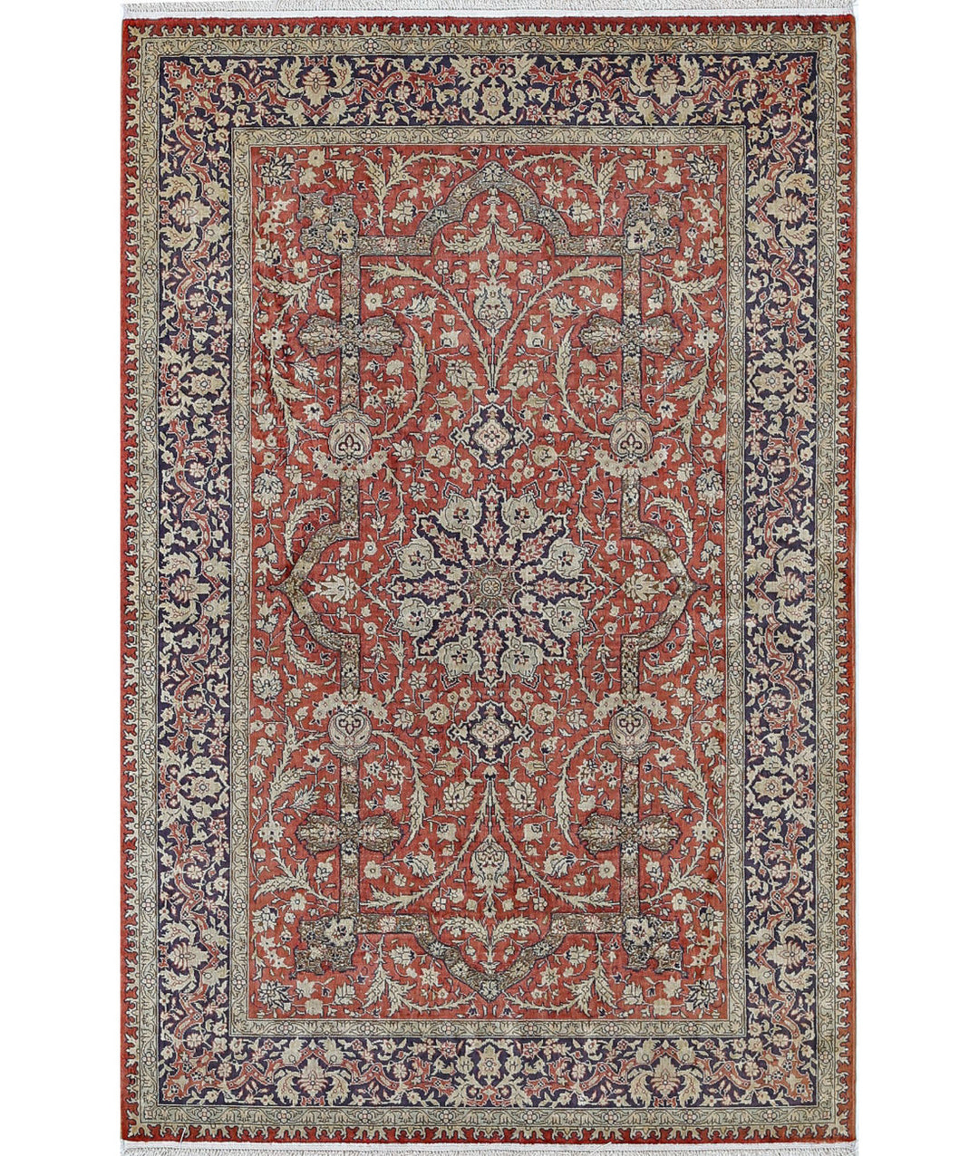 Hand Knotted Masterpiece Oriental Qum Silk Rug 6' 0" x 9' 0" - No. AT56543