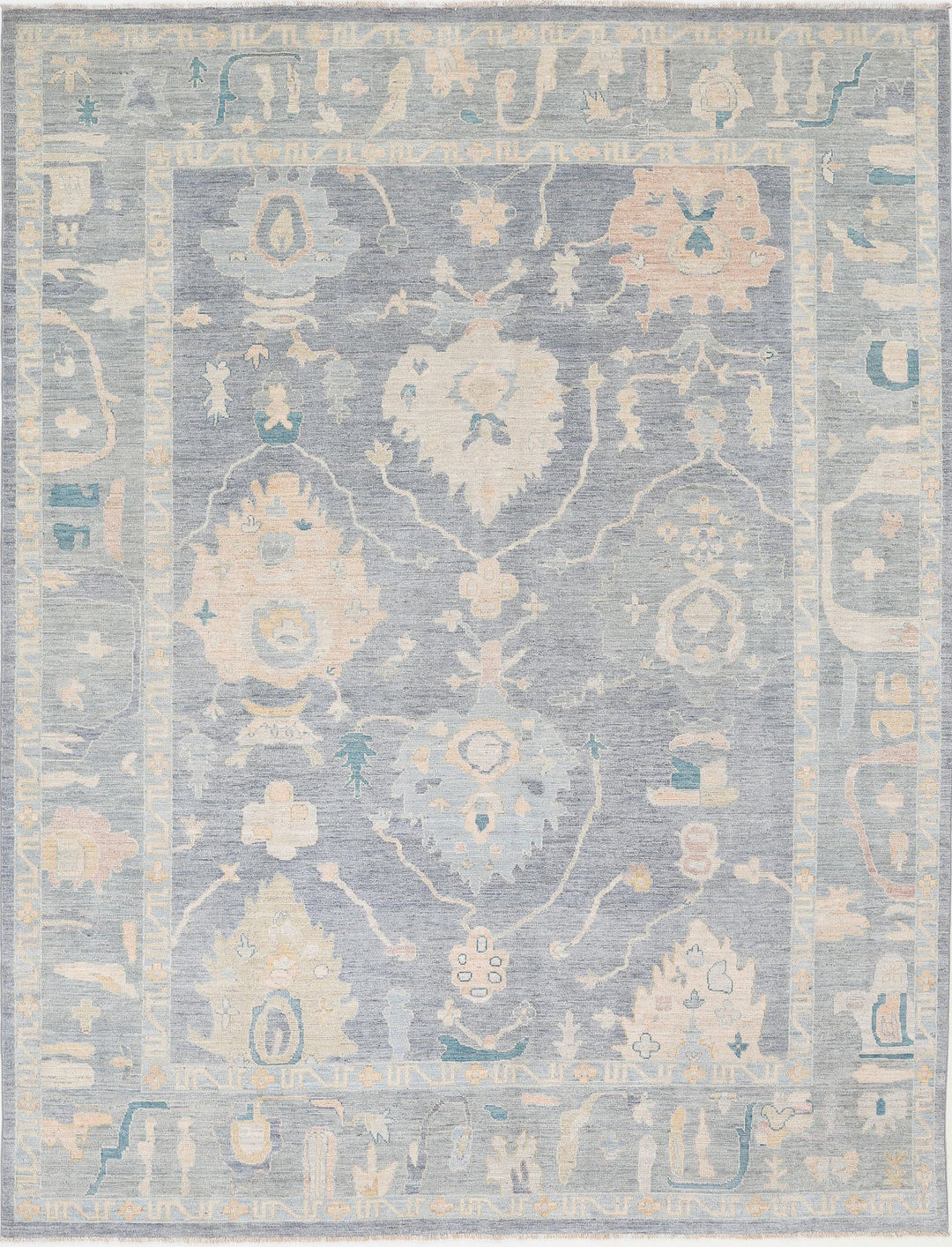 Hand Knotted Oushak Wool Rug 8' 10" x 11' 8" - No. AT12982