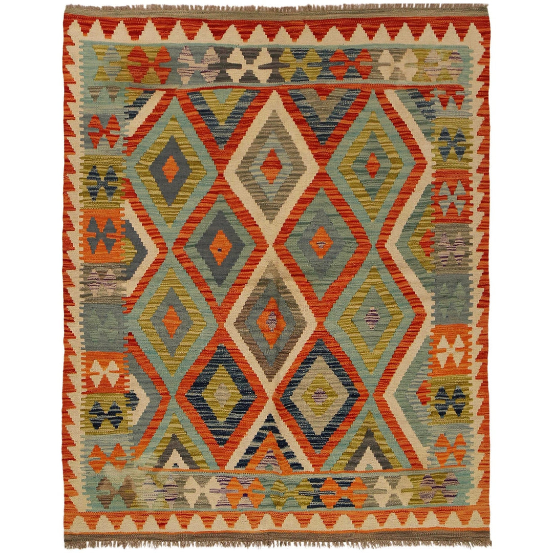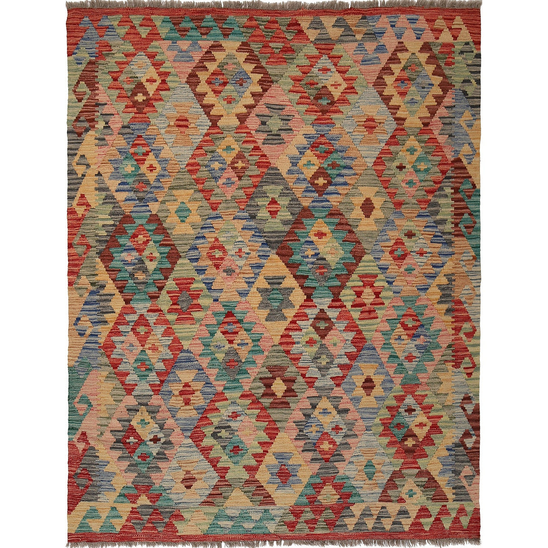 Colorful Flat-Weave Wool Kilim 5' 2" x 6' 7" - No. AL81861