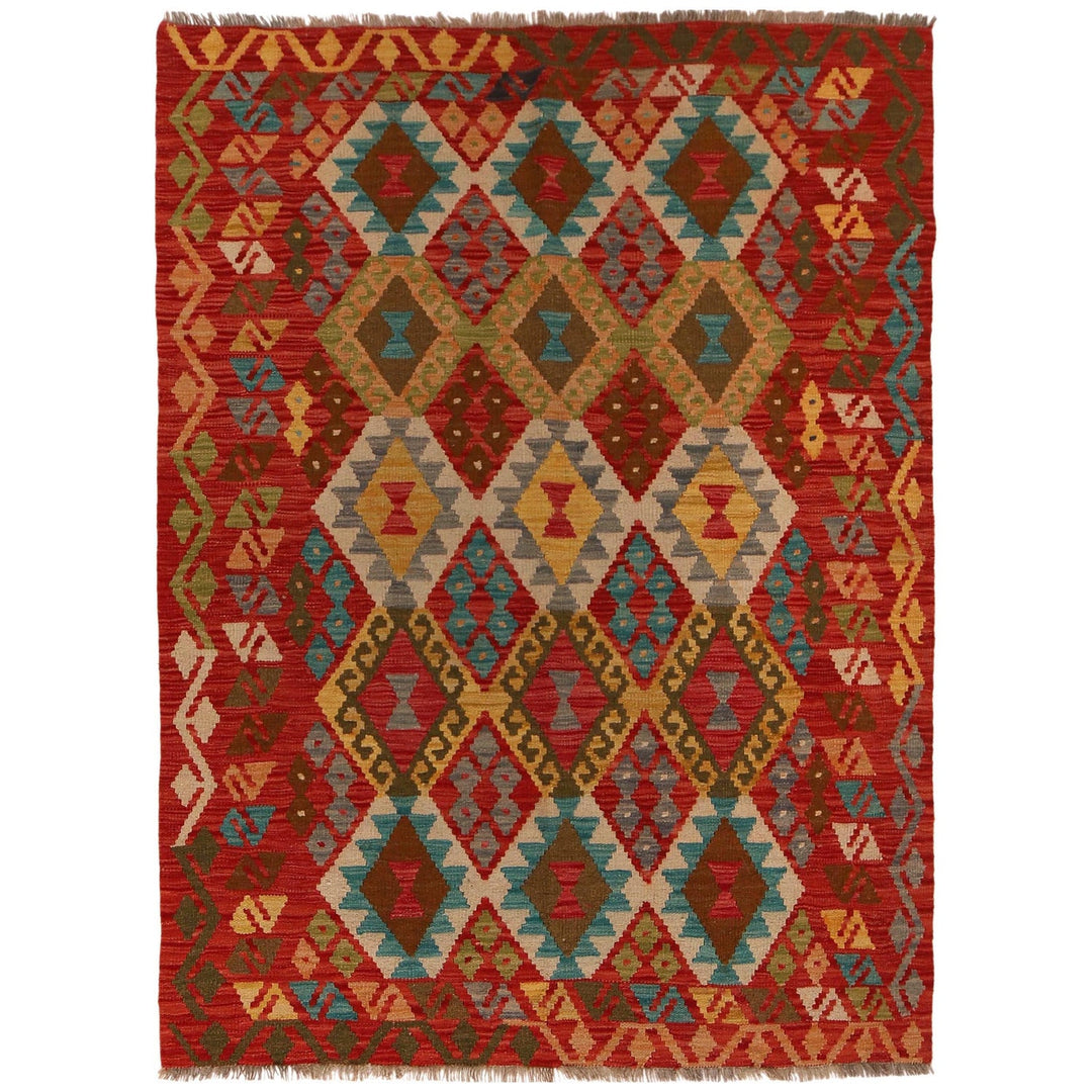 Colorful Flat-Weave Wool Kilim 4' 2" x 5' 8" - No. AL70983