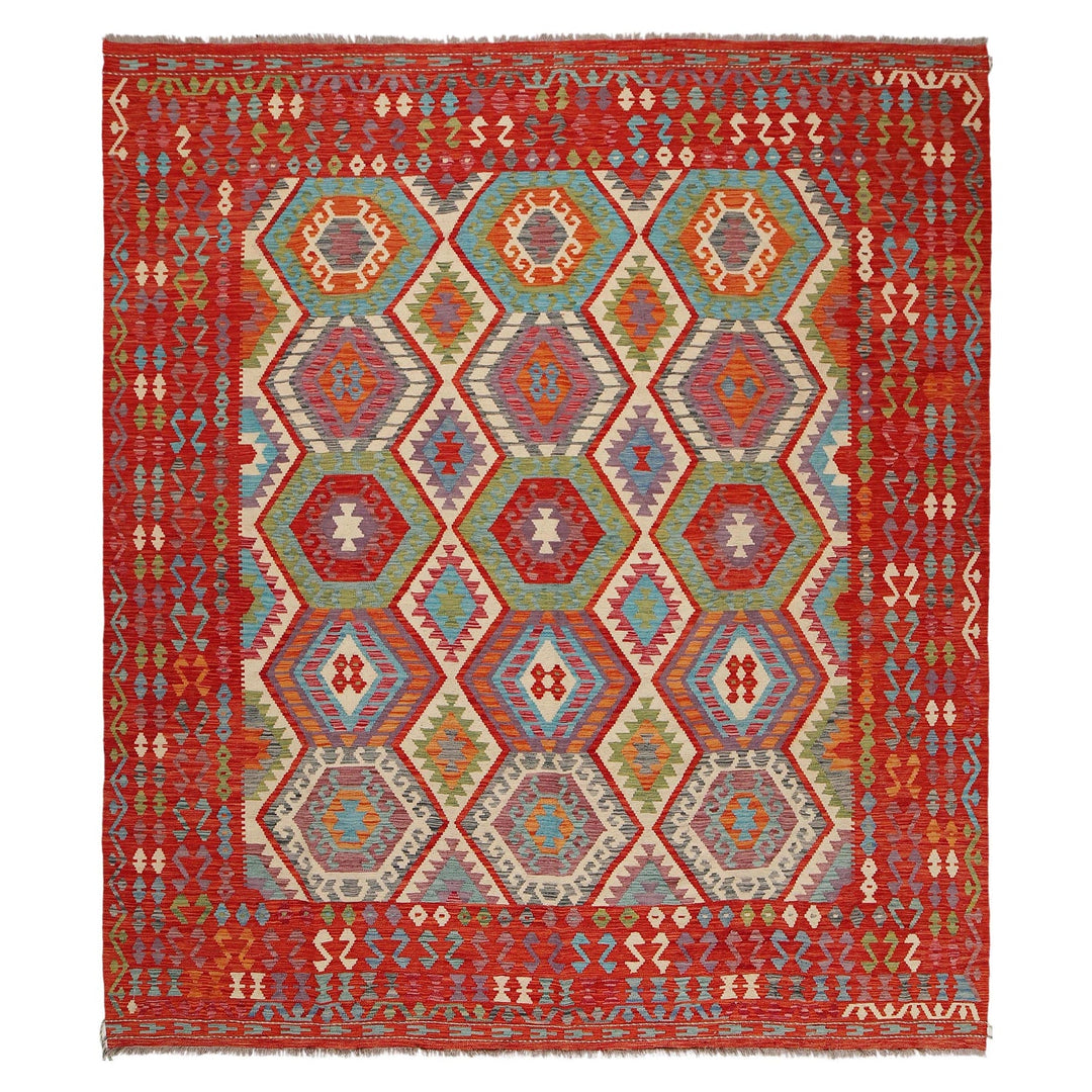 Hand Knotted Afghan Style Kilim 8' 1" x 9' 8" - No. AL59095