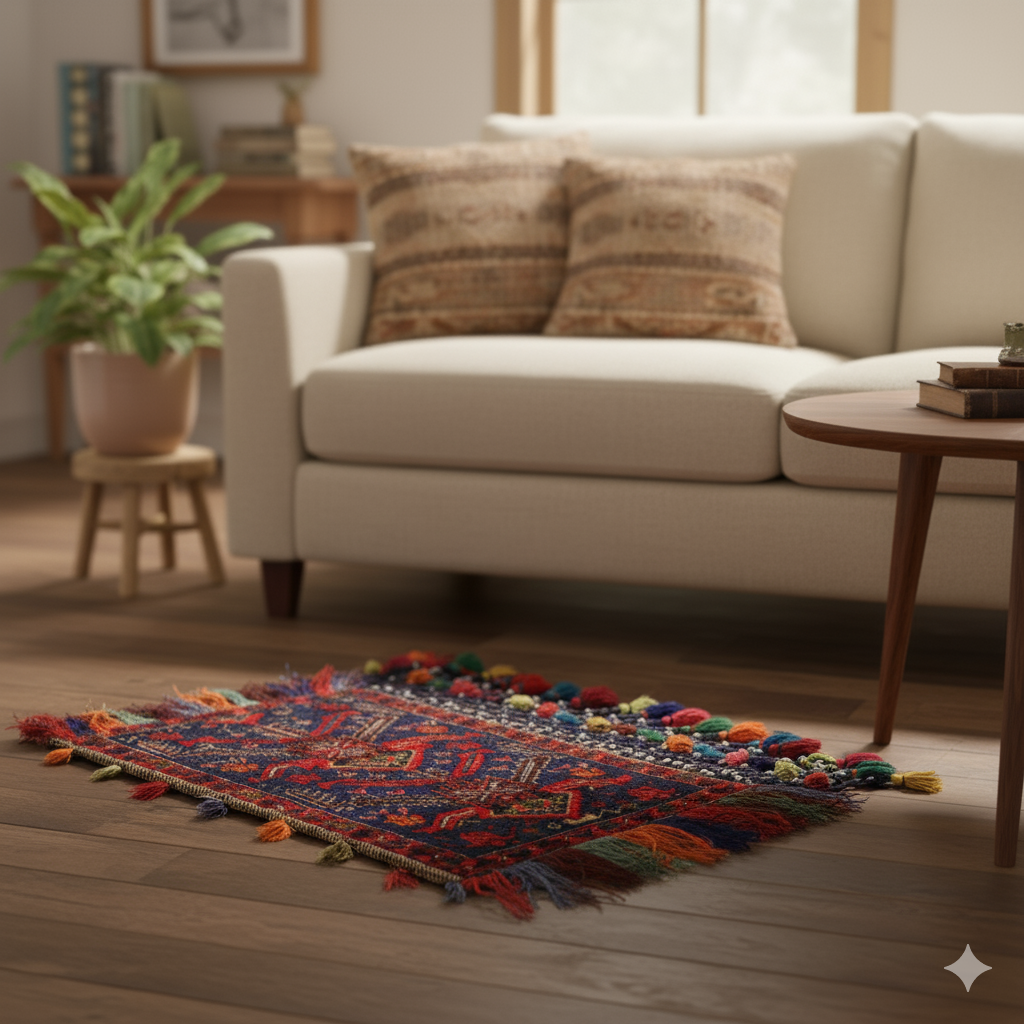 | Known as | Arabian Style Cushion, Balisht Rug, Salt Bag, Baloch Balisht Area Rug | ||