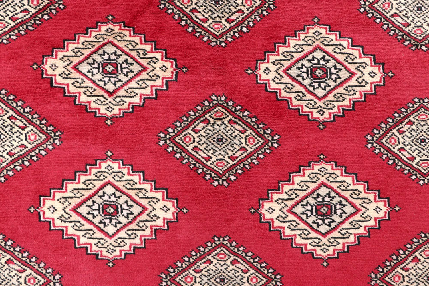 A Beautiful and versatile Oriental rug to decorate your home. This Jaldar rug is durable and a good investment. It is in perfect condition. The traditional hand-knotted rug is made up of wool, and measures 6' 9" x 8' 3". It is a rectangle shape rug. The primary color is red . The collection has the variety of Jaldar carpets and runners. It is currently in stock. Available in geometric pattern and floral design. Free delivery from 4-6 business days.