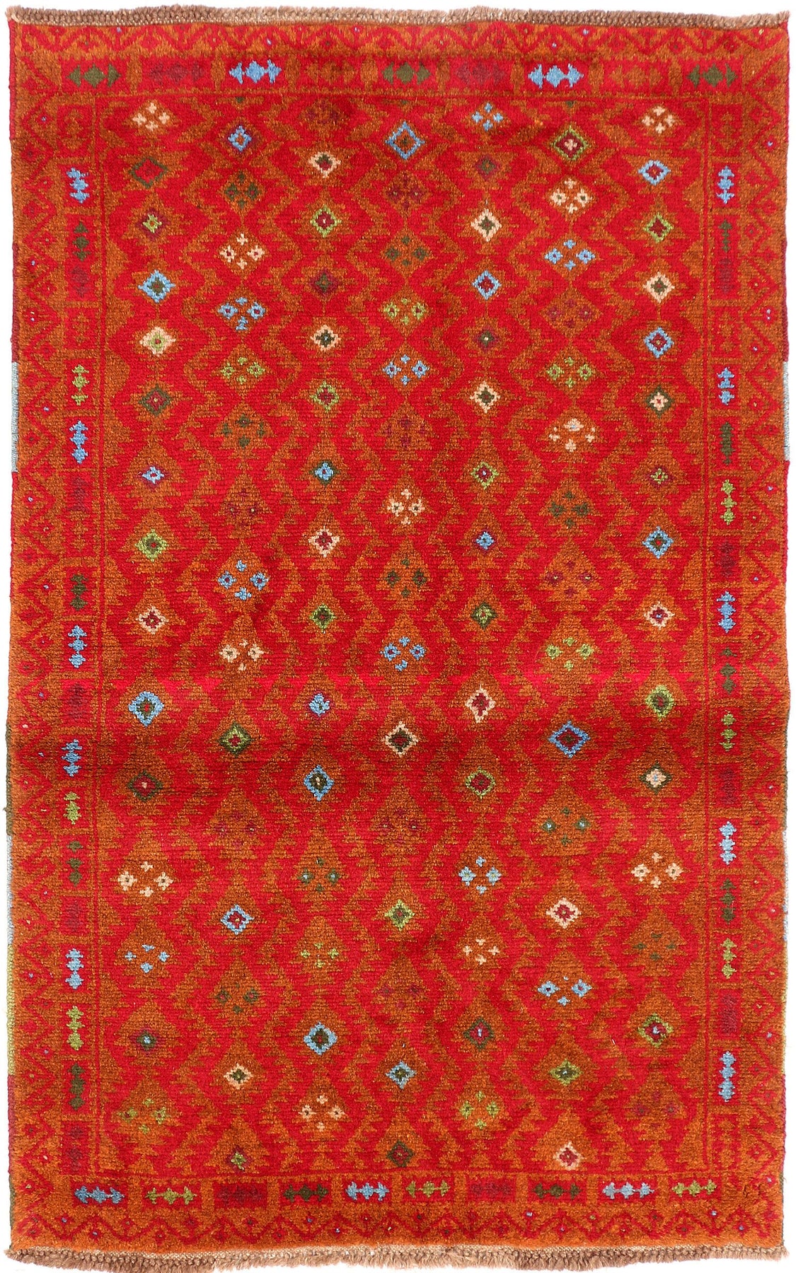 This Afghan Baluchi design rug is hand-knotted with Wool on Wool.