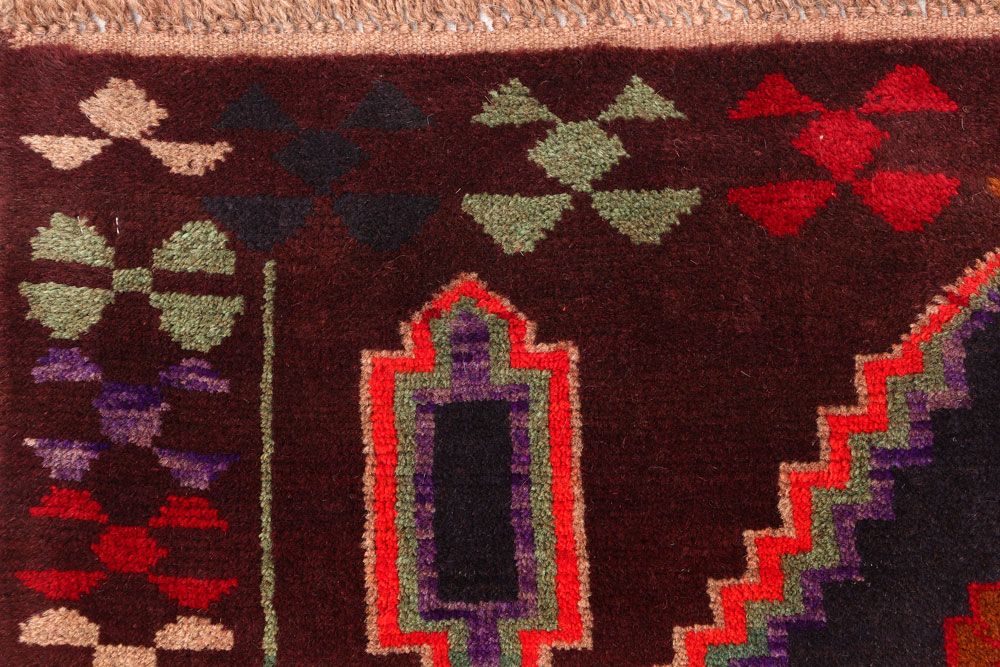 This Afghan Baluchi design rug is hand-knotted with Wool on Wool.