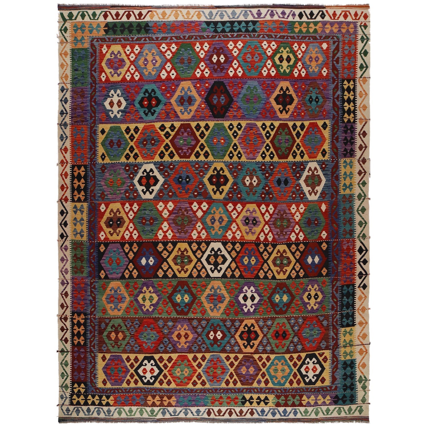 Hand Knotted Afghan Style Kilim 9' 10" x 13' 1" - No. AL41024