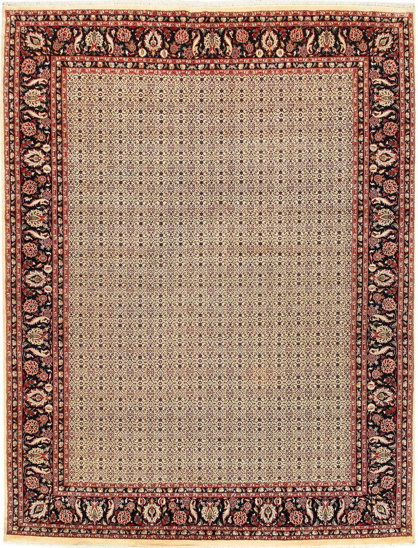 This Pakistan Mahal design rug is hand-knotted with Wool on Cotton and has 14 x 14 (196) knots per square inch. The primary color in this handmade rug is Lemon Chiffon. This rug is New and in Perfect condition. The measurements for this rug are: 9 feet 11 inches wide by 13 feet 3 inches long. This rug is currently Available and will ship within 2 business days. Free International Shipping & 14-Day Returns. This rug's SKU # is 56942.