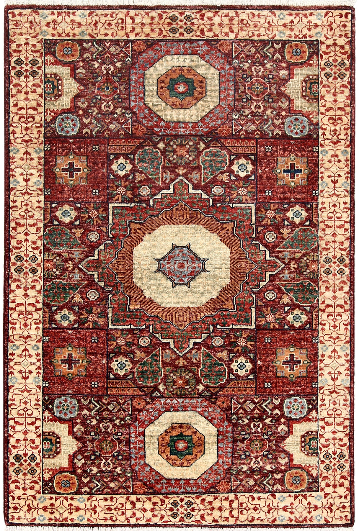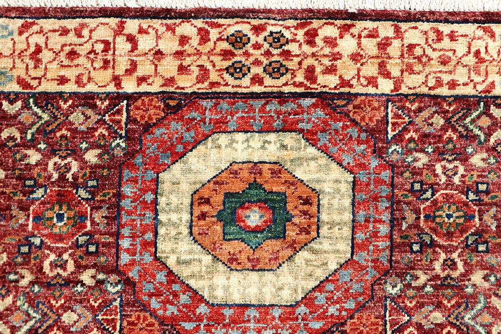 The Alrug Multi Colored Mamluk Rug is made from high-quality material. It measures 3' 4 x 4' 11 feet. The rug can be used in multiple areas of your home, such as the living area, dining room, bedroom, and kitchen. Its beautiful geometric patterning will add style and class to any space. This Multi Colored Mamluk rug is a lovely addition to any home. It has a beautiful design that will make it a stylish and elegant addition. This Multi Colored Mamluk rug can be displayed in the living, kitchen, bedroom, and dining areas. The rug is 100% made from quality material, making it durable and easy to clean. This Handmade rug is versatile and can be used with both traditional and contemporary decor.
