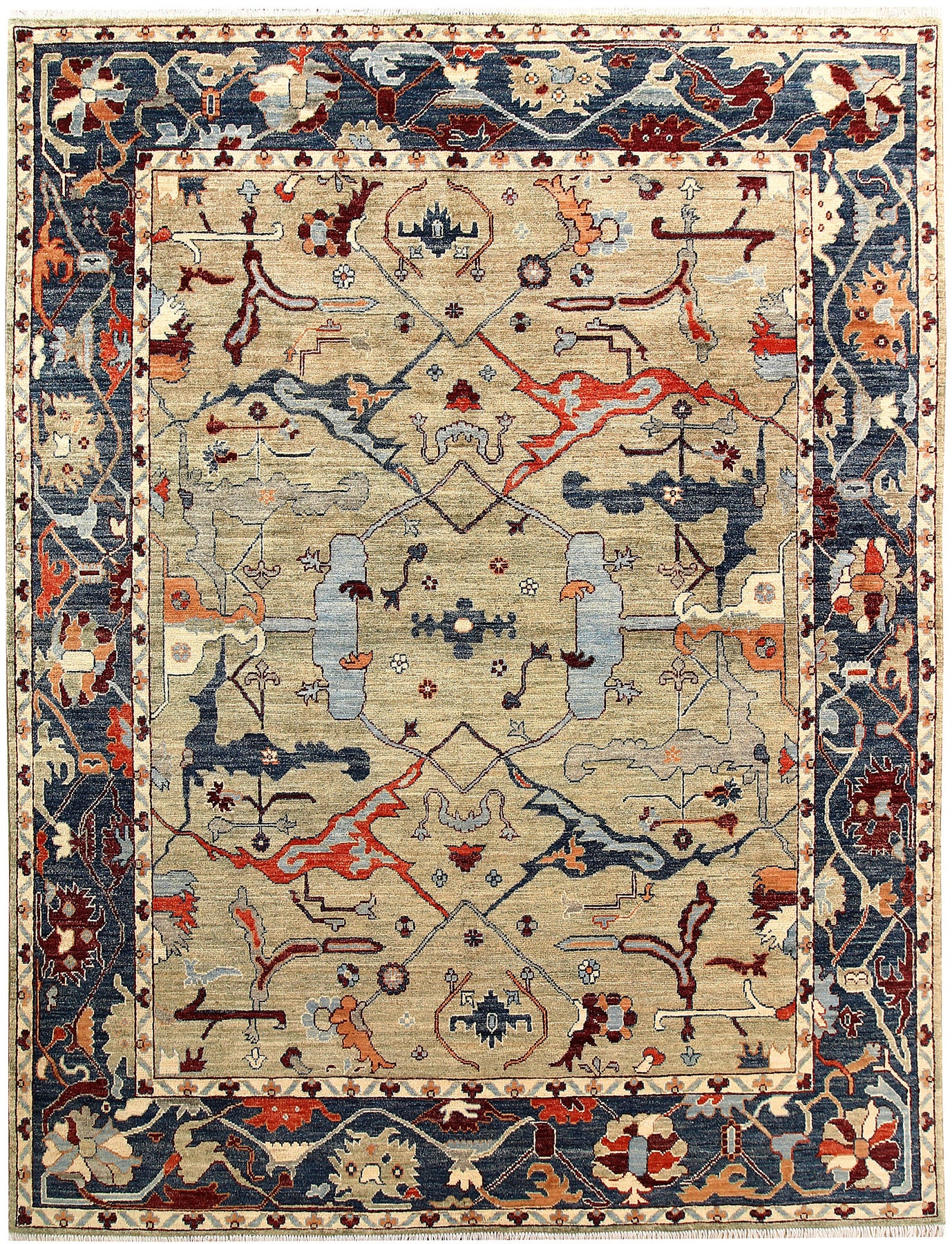 Very beautiful handmade/hand-knotted Beige/Green Oriental Oushak from Afghanistan