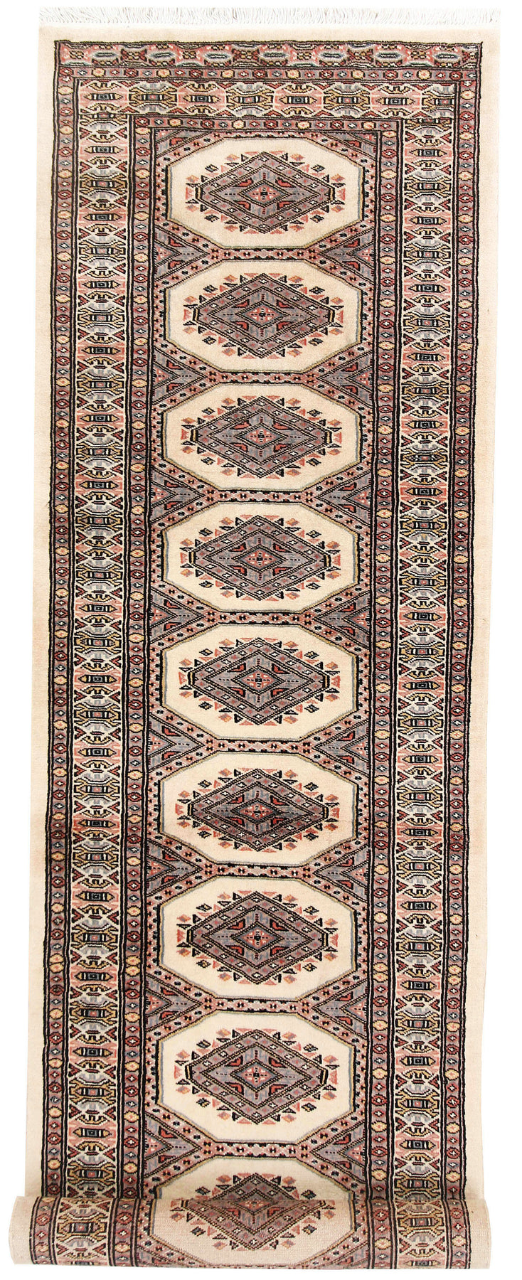 A Beautiful and versatile Oriental rug to decorate your home. This Jaldar rug is durable and a good investment. It is in perfect condition. The traditional hand-knotted rug is made up of new zealand worsted wool, and measures 2' 4" x 8' 6". It is a runner shape rug. The primary color is white . The collection has the variety of Jaldar carpets and runners. It is currently in stock. Available in geometric pattern and floral design. Free delivery from 4-6 business days.