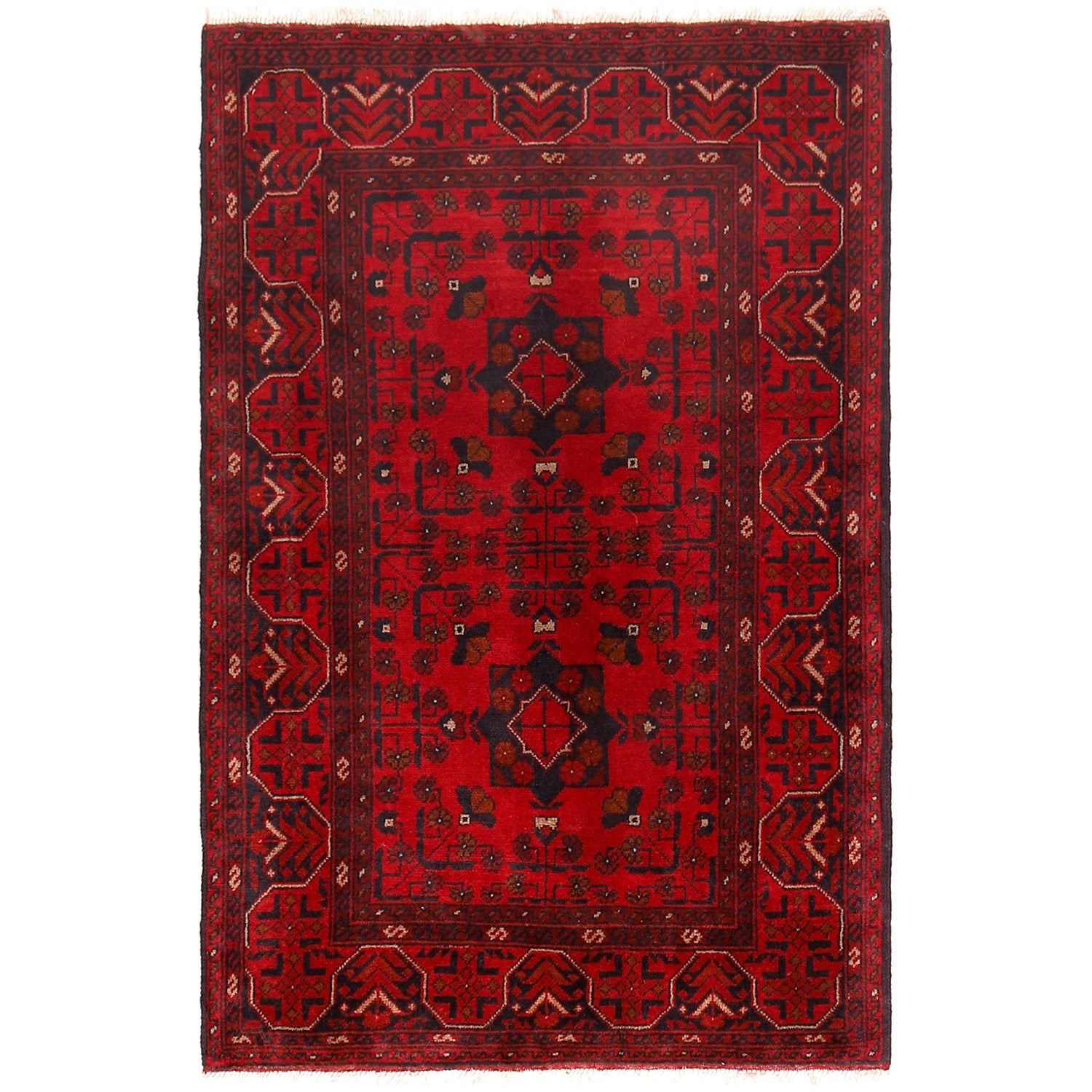 Red Color Afghan Area Rug 3' 5" x 5' 0" - No. AL80109