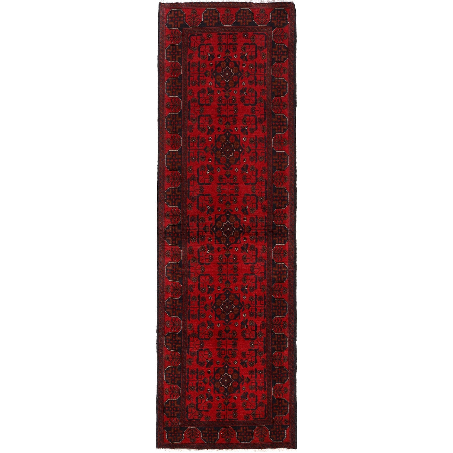 Red Color Afghan Area Runner Rug 2' 9" x 9' 9" - No. AL80387