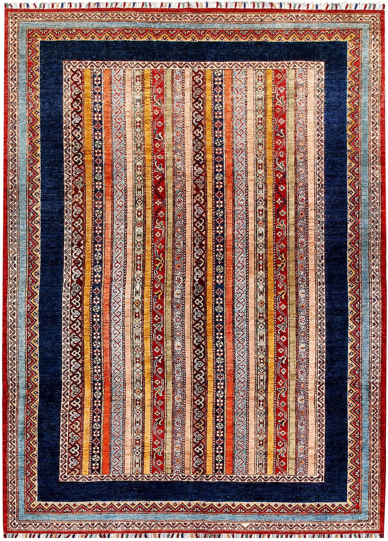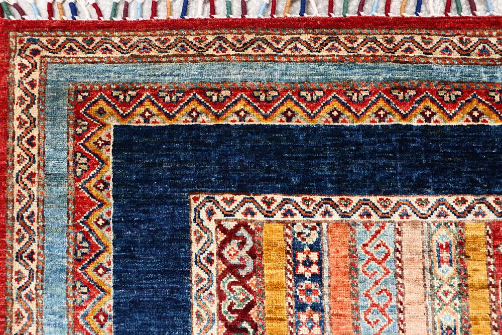 This Afghan Shawl design rug is hand-knotted with Wool on Cotton.