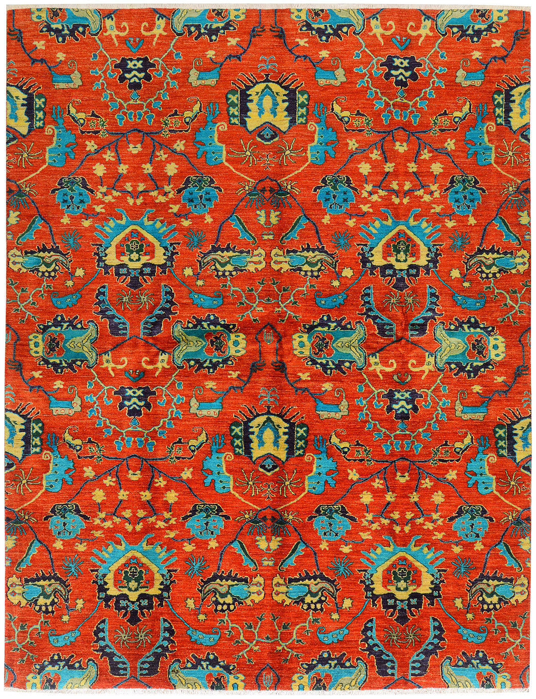 Orange Red Ikat 7' 11" x 10' 1" - No. QA85504