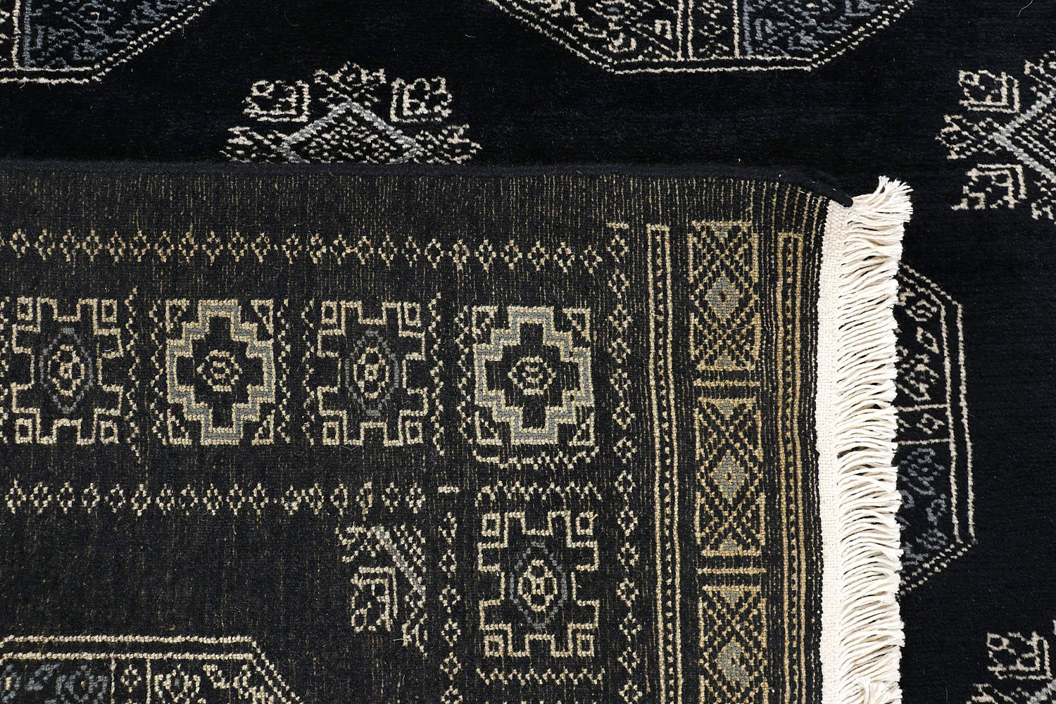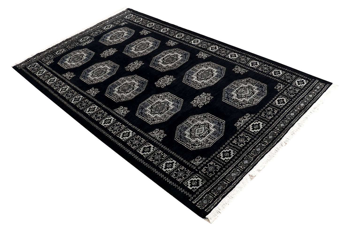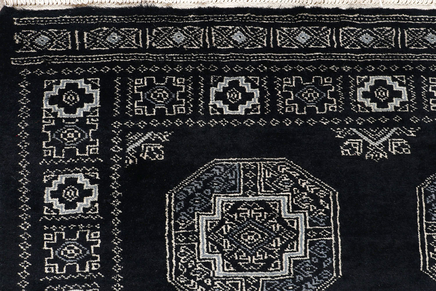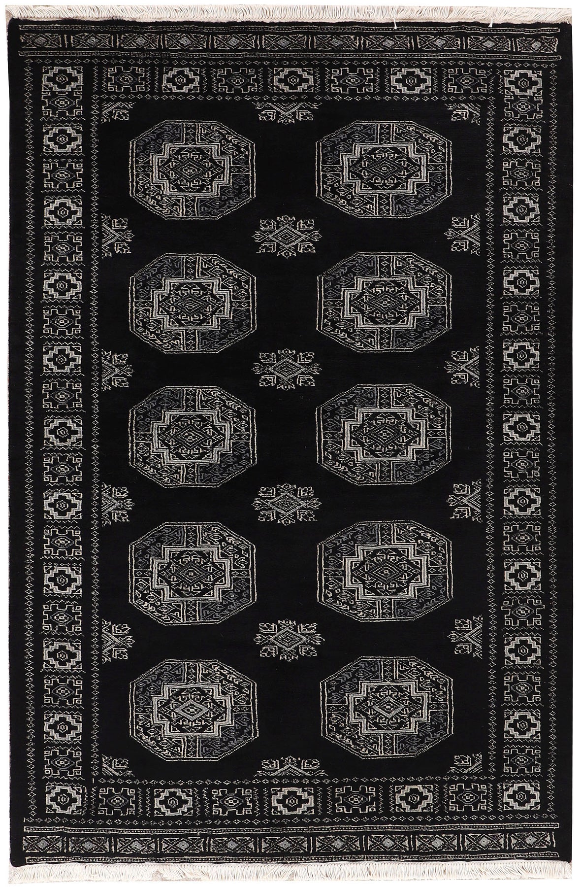 This Black Rectangle Fil Pa rug for sale is from Pakistan and made using Hand-Knotted weaving technique. It has a wool pile and wool foundation with the Perfect Geometric pattern over Rectangle Grey base. Buy this Rectangle None Grey Fil Pa rug in size 3 x 6 now!