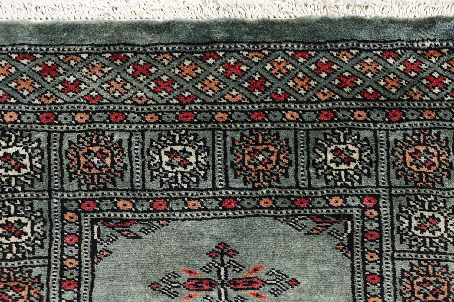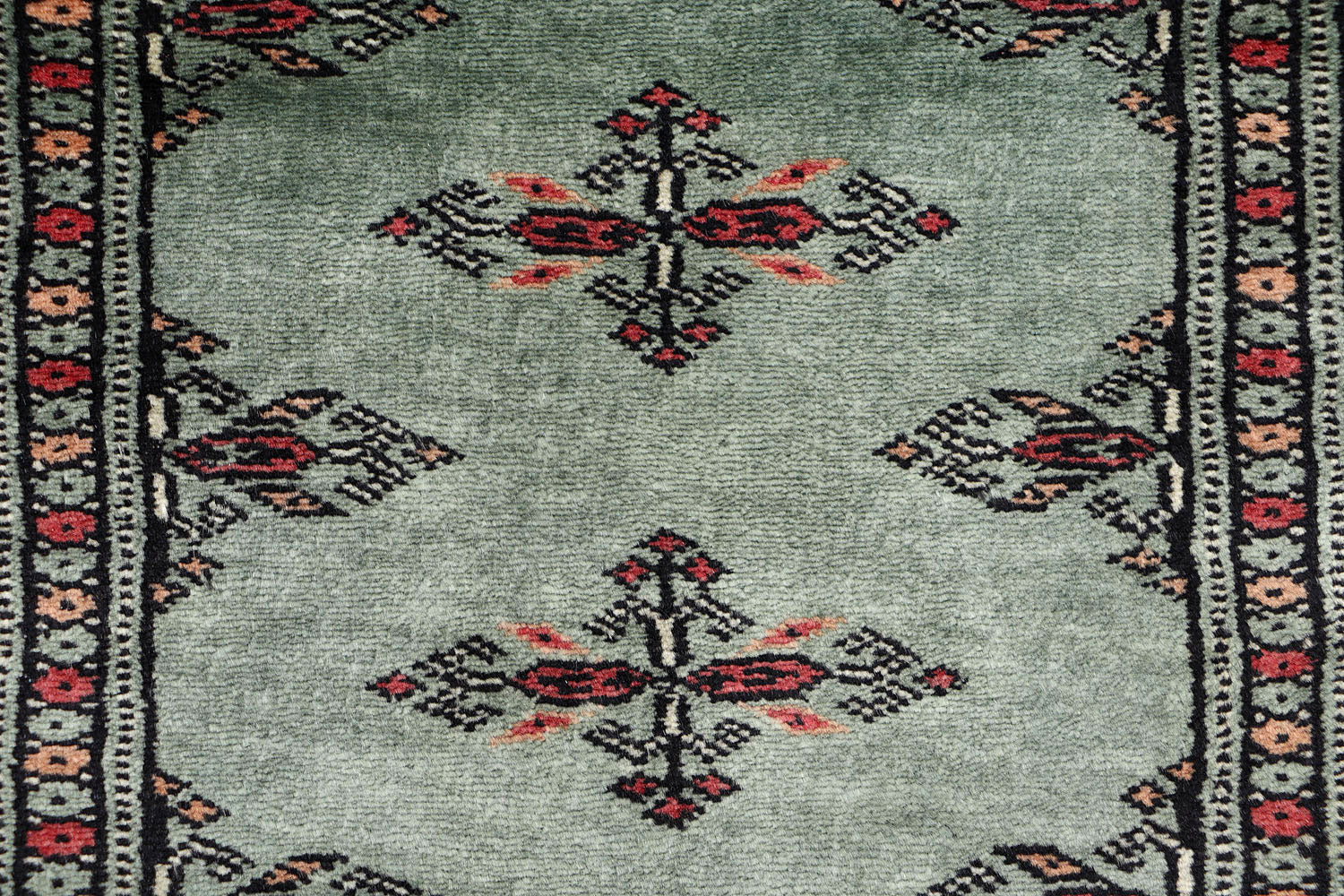 This Dark Olive Green Butterfly Runner rug is from Pakistan and has Geometric pattern over it. It has a New Zealand Worsted Wool pile and Cotton foundation. The Butterfly rug is crafted using Hand-Knotted weaving technique with 9 x 14 (126) KPSI. The size of this Green Runner Butterfly rug is 2 x 6 which is Perfect for small spaces.