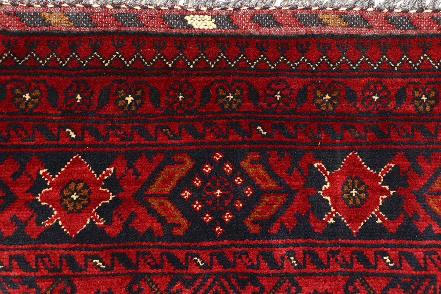 This Dark Red colored TribalKhal Mohammadi rug is handmade in Afghanistan using the Senneh knot. It has a Cotton foundation and Red Wool pile with Tribal Geometric pattern. The New Dark Red Khal Mohammadi Wool rug is Runner in shape and 2 x 6 in size with a Perfect Tribal vibe.
