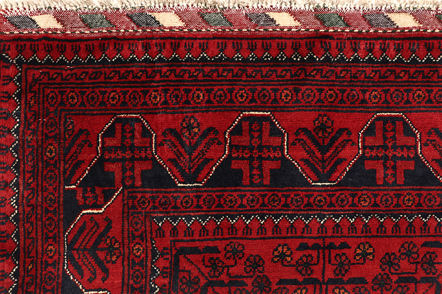 This Dark Red colored TribalKhal Mohammadi rug is handmade in Afghanistan using the Senneh knot. It has a Cotton foundation and Red Wool pile with Tribal Geometric pattern. The New Dark Red Khal Mohammadi Wool rug is Runner in shape and 2 x 6 in size with a Perfect Tribal vibe.