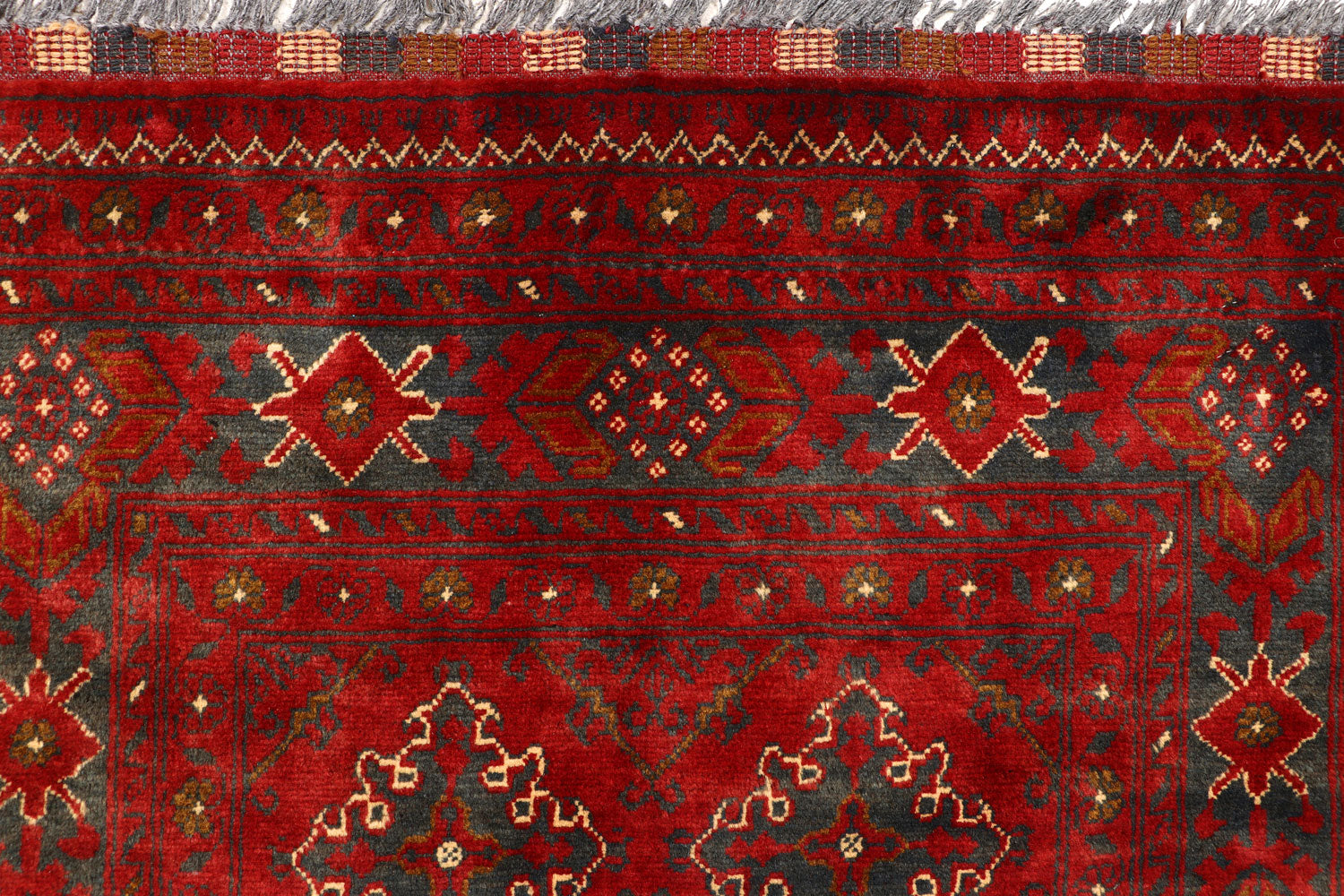 This Dark Red colored TribalKhal Mohammadi rug is handmade in Afghanistan using the Senneh knot. It has a Cotton foundation and Red Wool pile with Tribal Geometric pattern. The New Dark Red Khal Mohammadi Wool rug is Runner in shape and 2 x 6 in size with a Perfect Tribal vibe.
