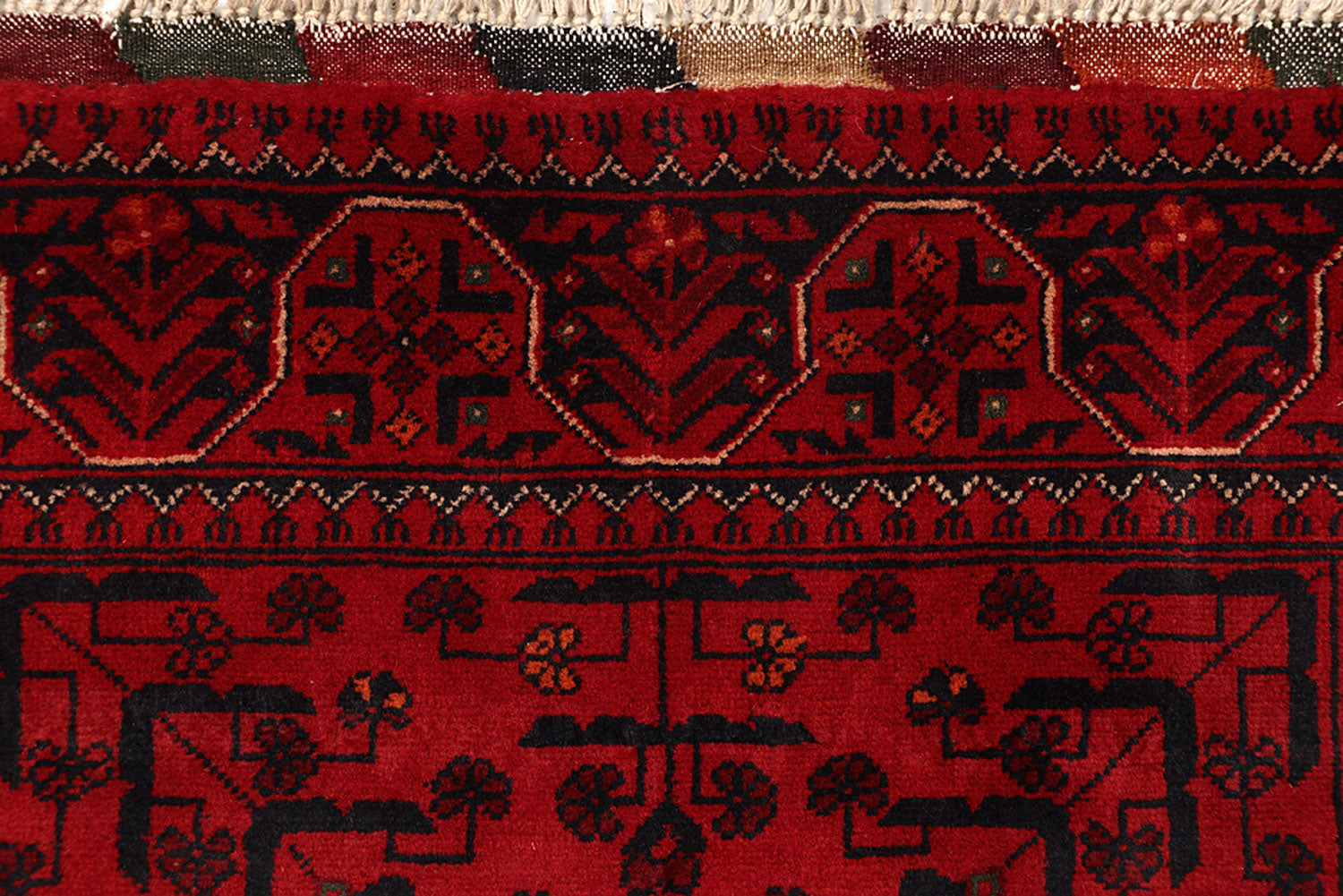 This Dark Red colored TribalKhal Mohammadi rug is handmade in Afghanistan using the Senneh knot. It has a Cotton foundation and Red Wool pile with Tribal Geometric pattern. The New Dark Red Khal Mohammadi Wool rug is Runner in shape and 2 x 9 in size with a Perfect Tribal vibe.