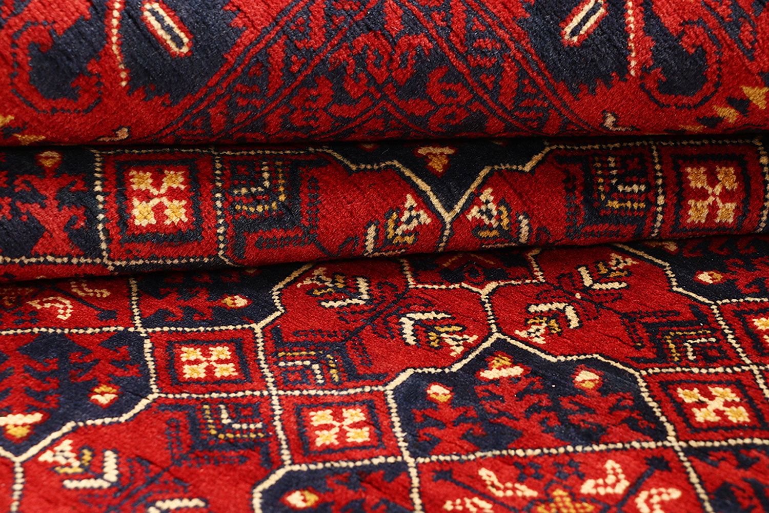 This Dark Red colored TribalKhal Mohammadi rug is handmade in Afghanistan using the Senneh knot. It has a Cotton foundation and Red Wool pile with Tribal Geometric pattern. The New Dark Red Khal Mohammadi Wool rug is Rectangle in shape and 6 x 9 in size with a Perfect Tribal vibe.