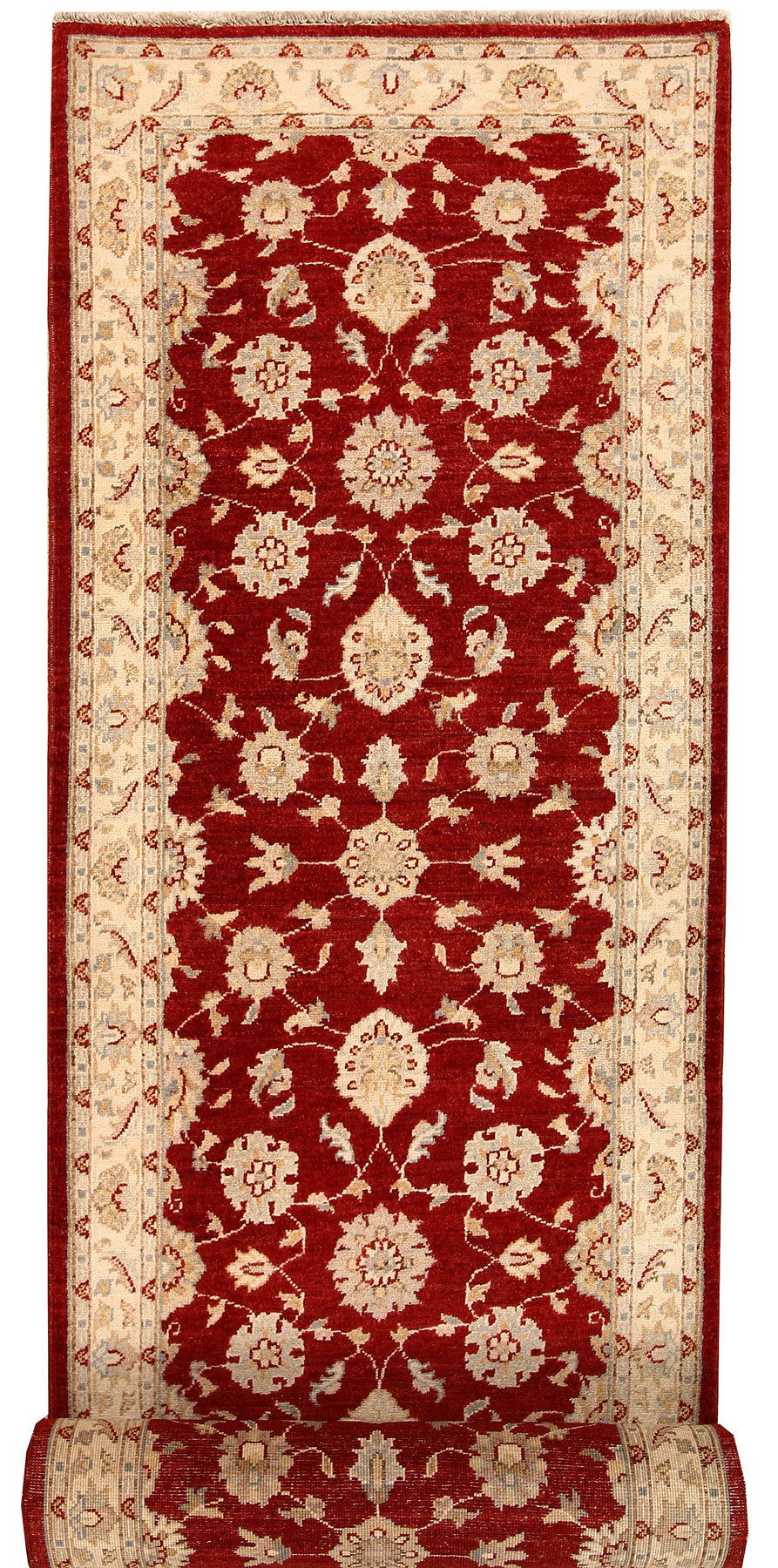 No need to travel to Afghanistan or Pakistan to buy an original handmade Ziegler rug! At our online store, you can order from our collection of exquisitely handwoven online Dark Red 2' 6" x 13' Ziegler rugs on sale and have them delivered anywhere in the world for free. And that too without compromising on quality.