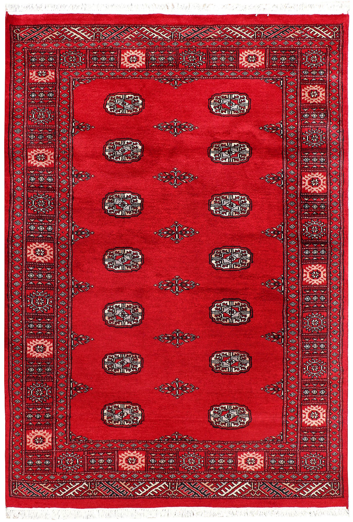 Filled with symbolic patterns and ancient designs, handmade Firebrick Bokhara 4' x 6' Rectangle rugs can direct attention towards themselves like nothing else!