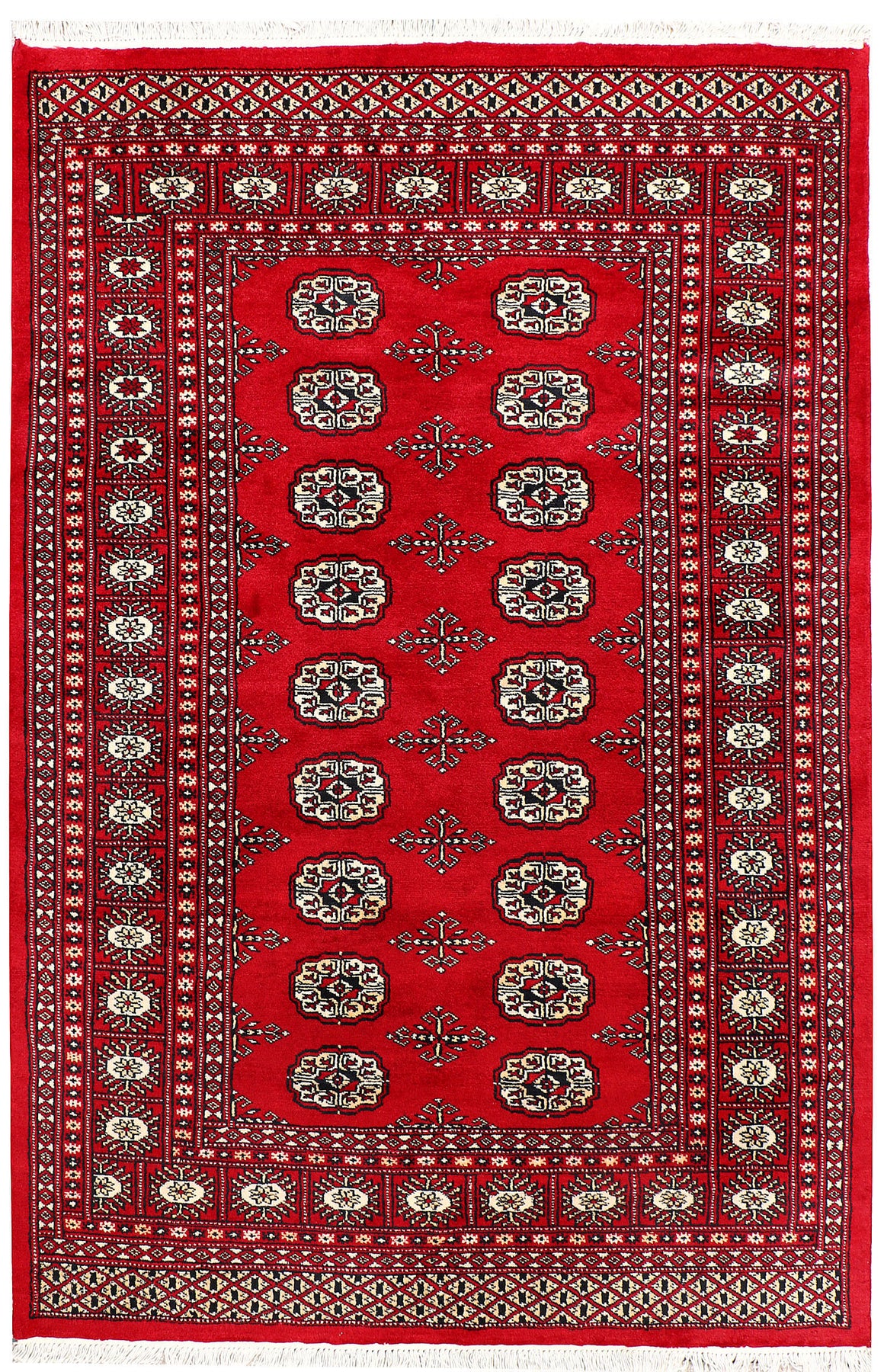 Filled with symbolic patterns and ancient designs, handmade Firebrick Bokhara 4' x 6' Rectangle rugs can direct attention towards themselves like nothing else!