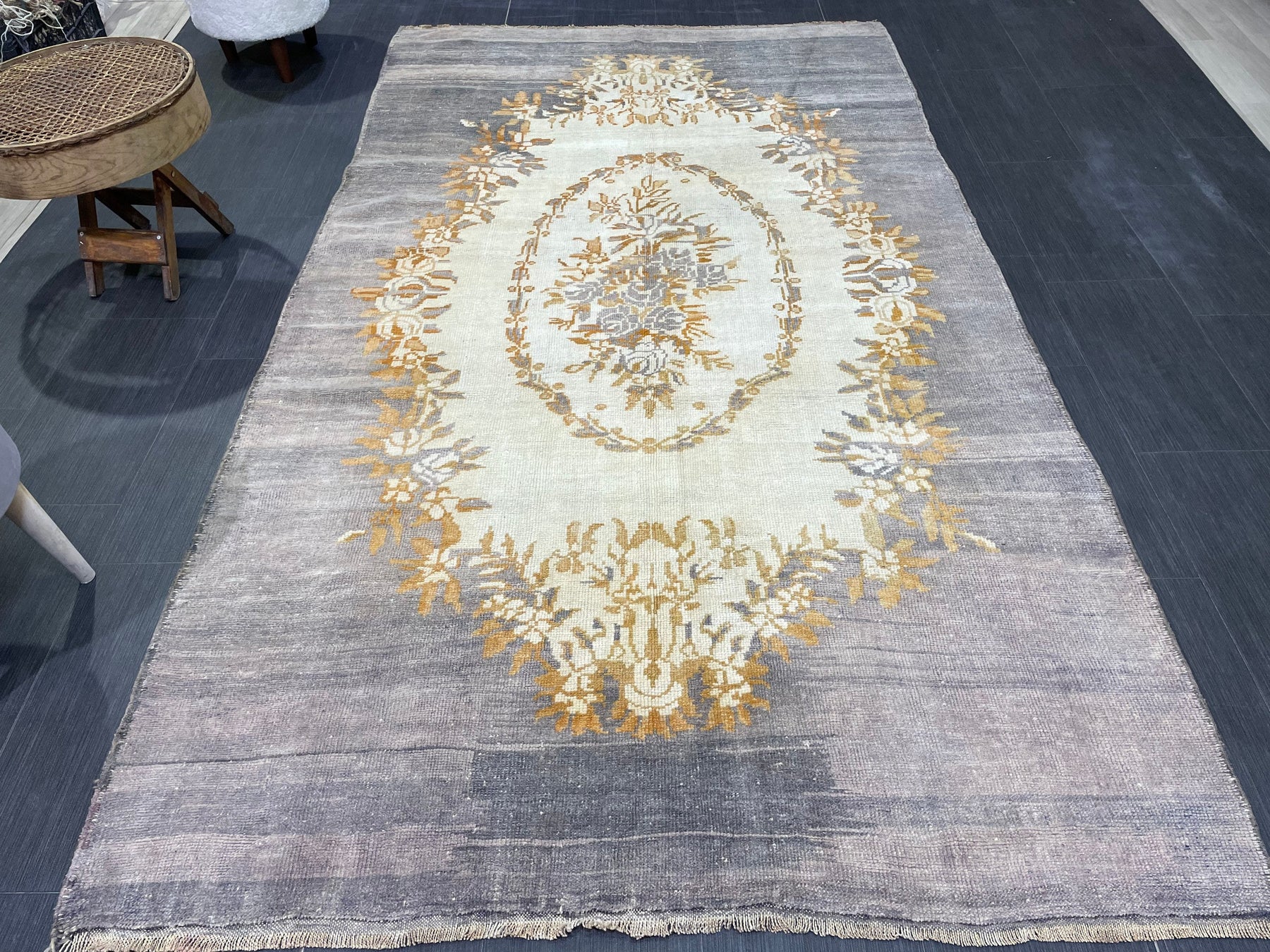 * VINTAGE RUGS HAS APPROPRIATE WEAR NATURALLY AND WE MAINTAIN THEM IF NEEDED ACCORDING TO THEIR ORIGINAL CONDITION, SINCE WE KNOW HOW THEY LOOK WHEN THEY WERE FIRST MADE .No Holes Or Tears * WE TAKE OUR RUG PICTURES IN DAY LIGHT , NOT IN DIRECT SUN LIGHT OR IN OUR STORE WITH NATURAL DAY LIGHT LED`S. NATURAL WOOL AND NATURAL DYES MIGHT HAVE DIFFERENT LIGHT REFLECTION DEPENDING ON AMBIENT LIGHT. ANY QUESTIONS