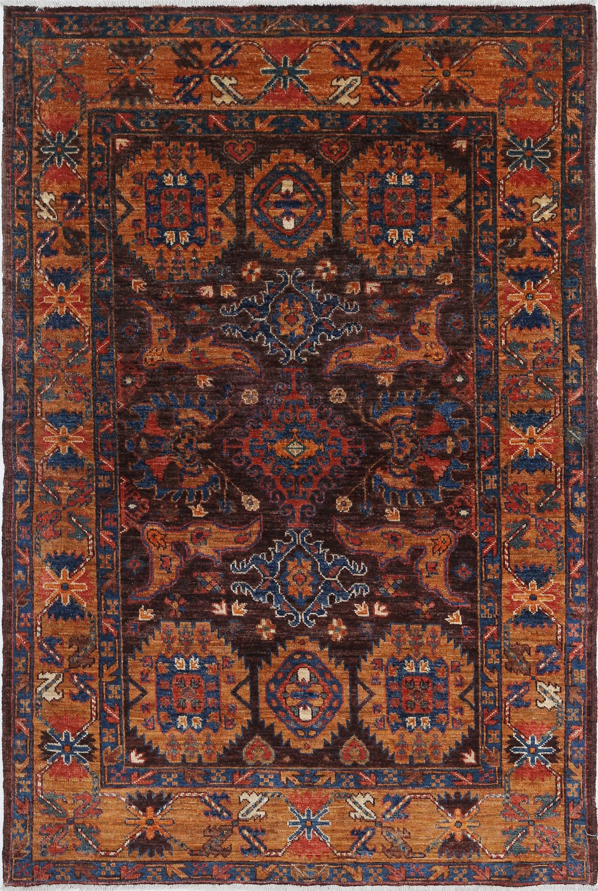 Hand Knotted Nomadic Caucasian Humna Wool Rug 3' 11" x 5' 11" - No. AT21850