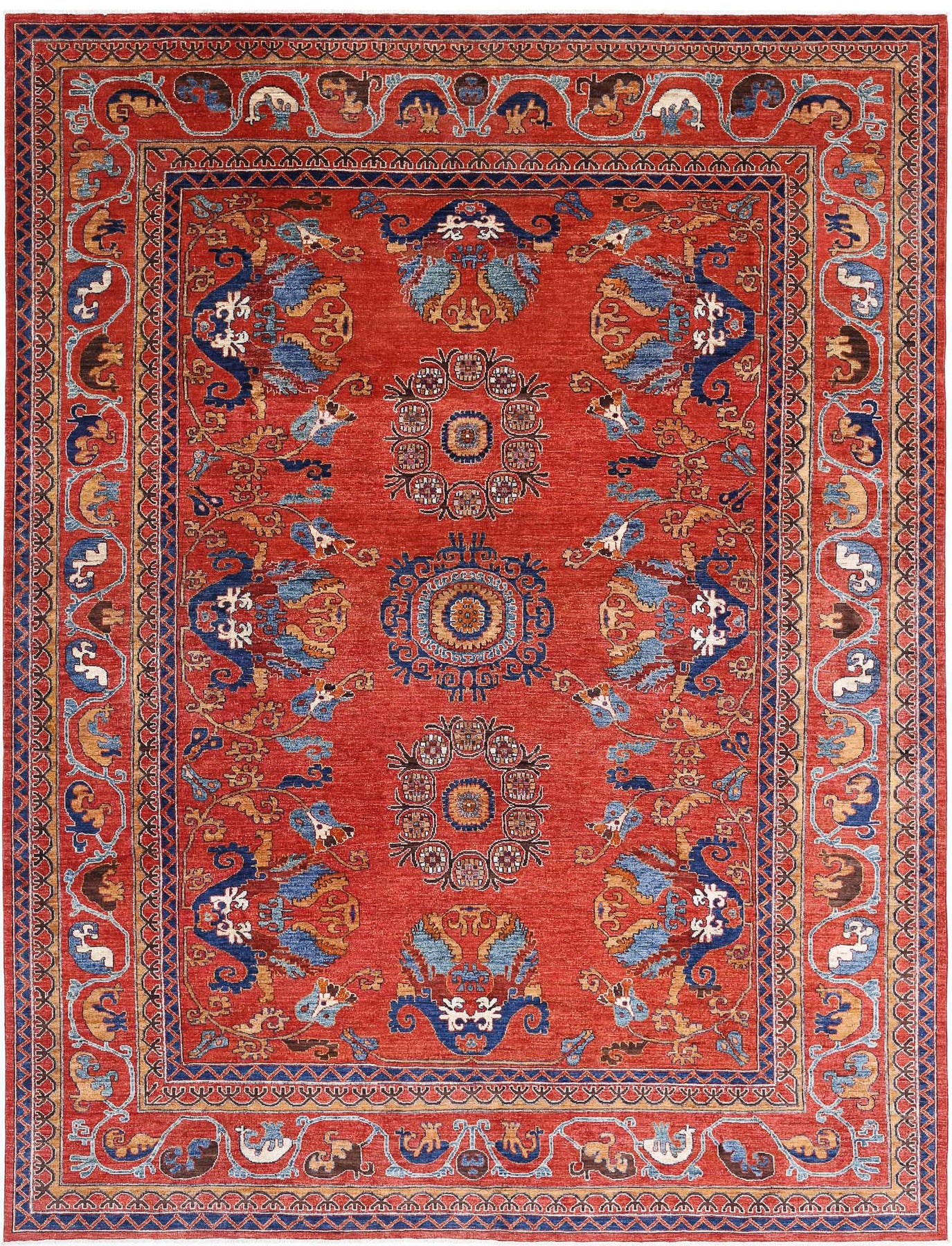 Hand Knotted Nomadic Caucasian Humna Wool Rug 9' 0" x 11' 9" - No. AT63991