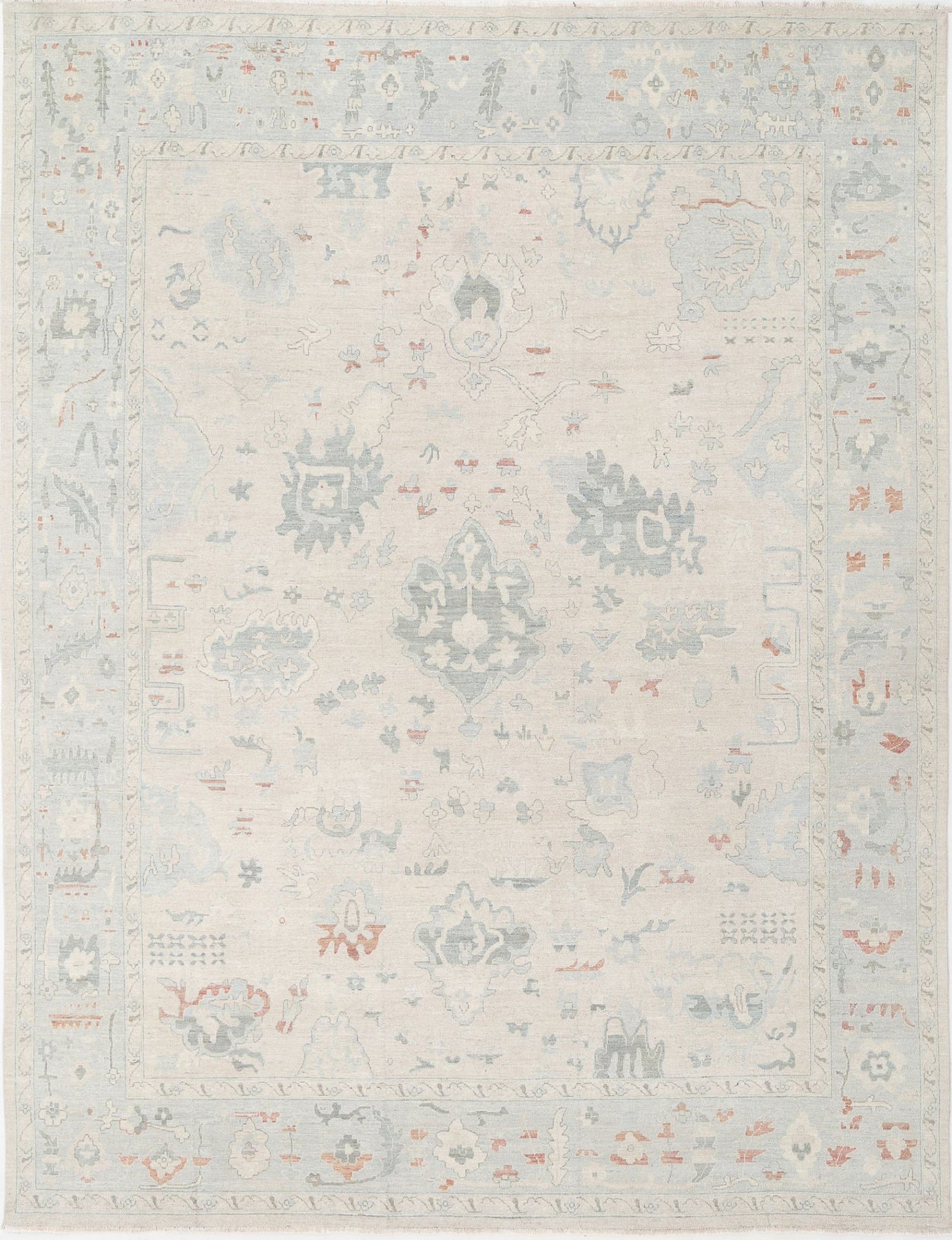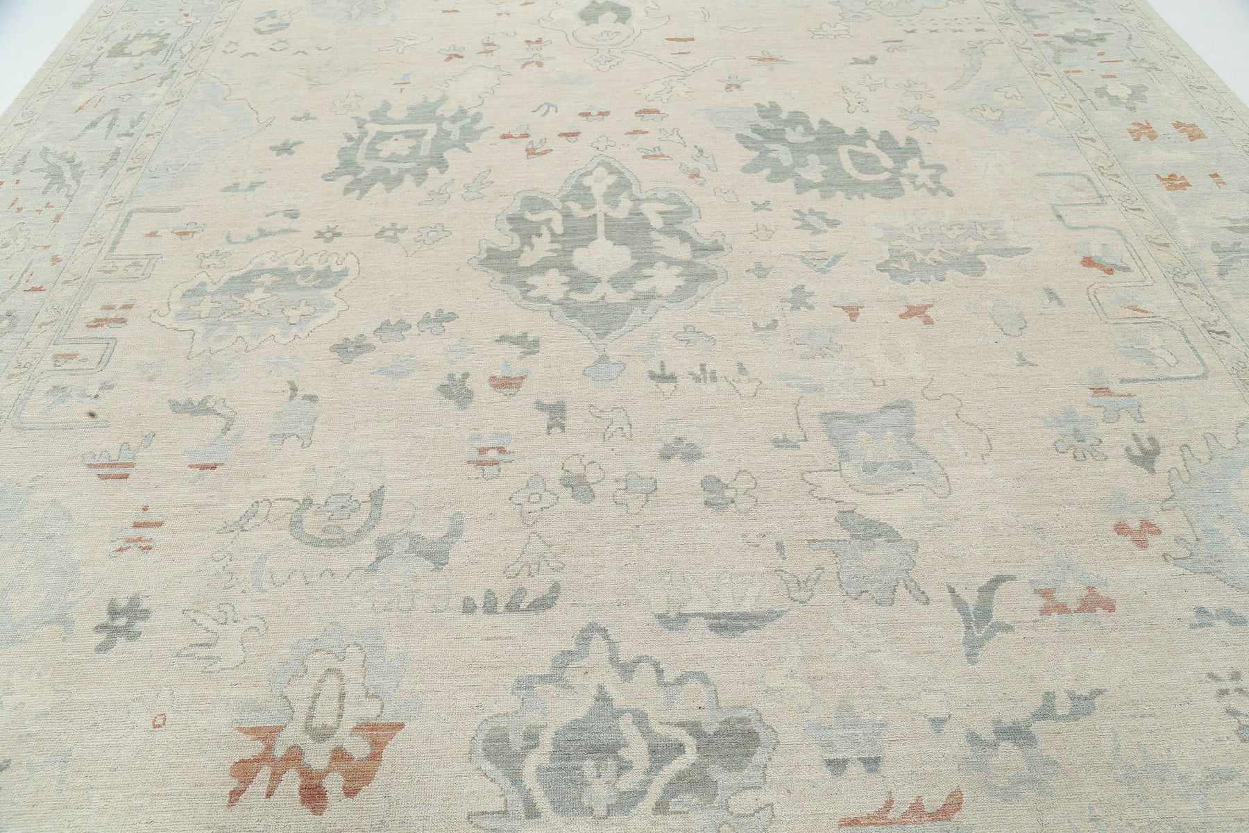 Hand Knotted Oushak Wool Rug 11' 8" x 14' 10" - No. AT83012