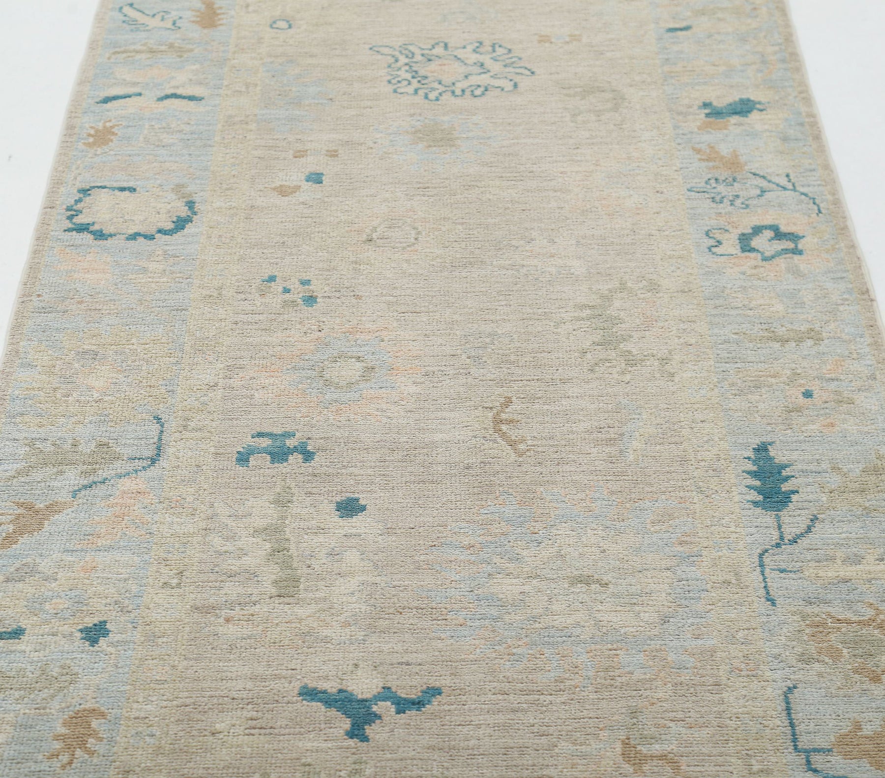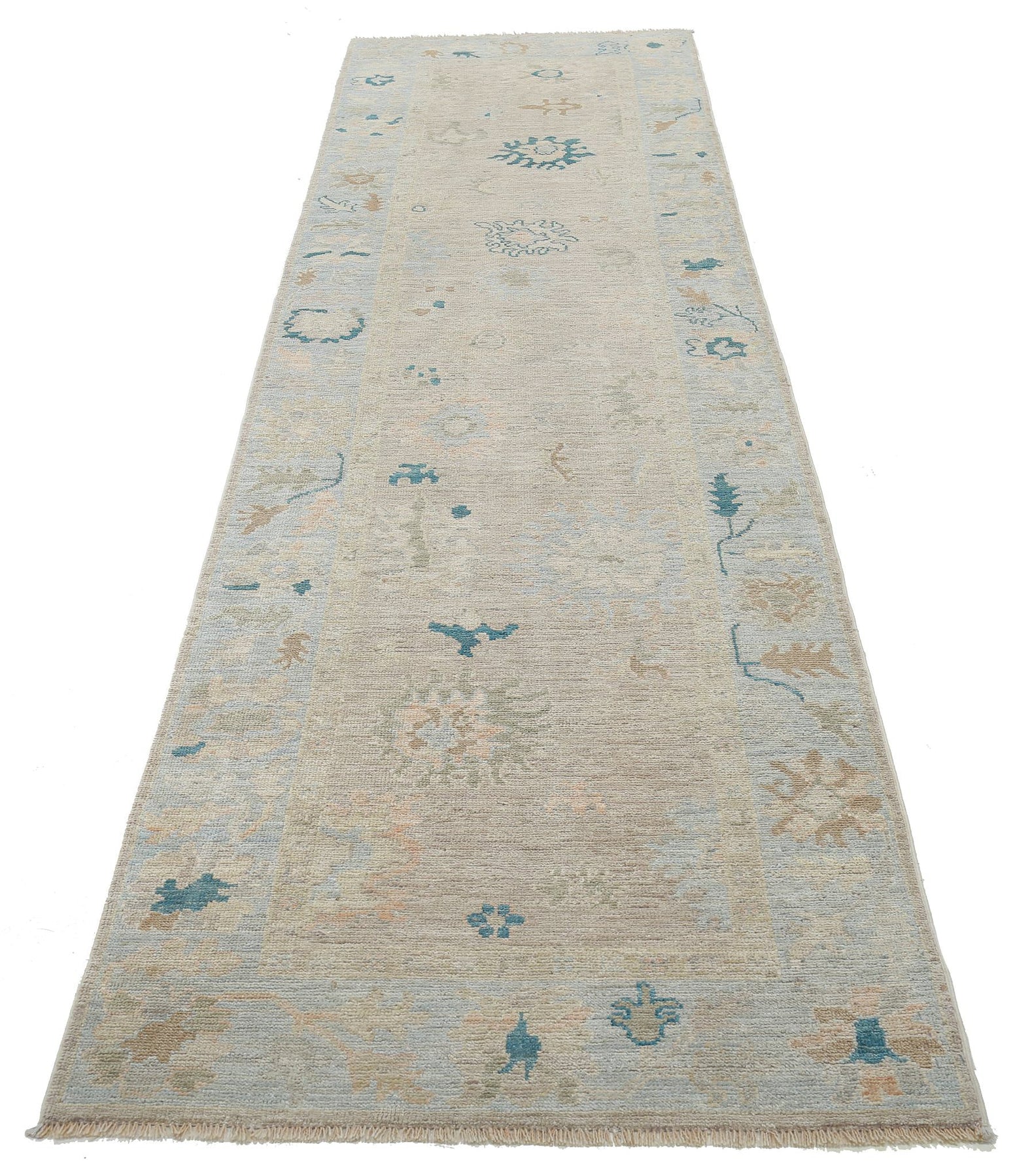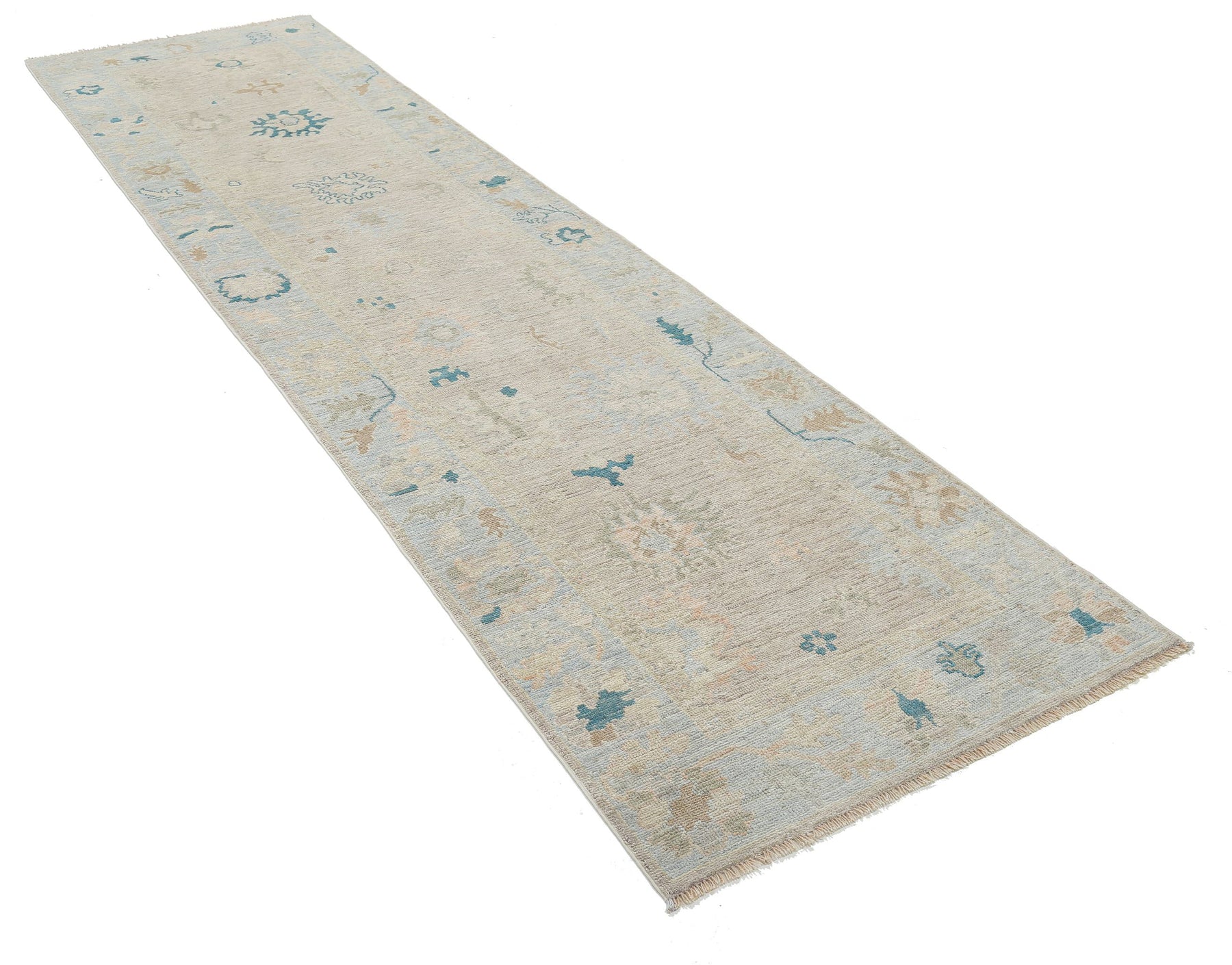 Hand Knotted Oushak Wool Rug 3' 1" x 11' 7" - No. AT32254