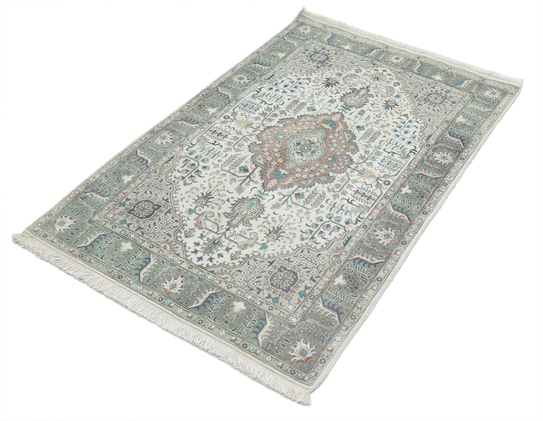 Hand Knotted Vintage Persian Tabriz Wool Rug 3' 2" x 5' 0" - No. AT66861