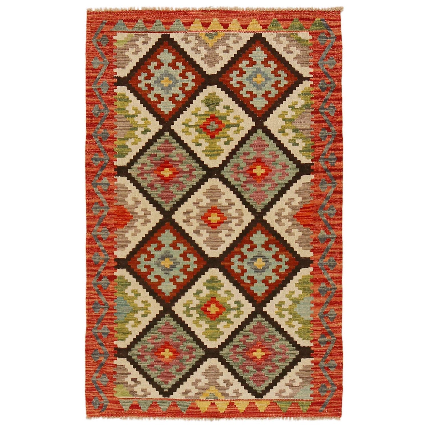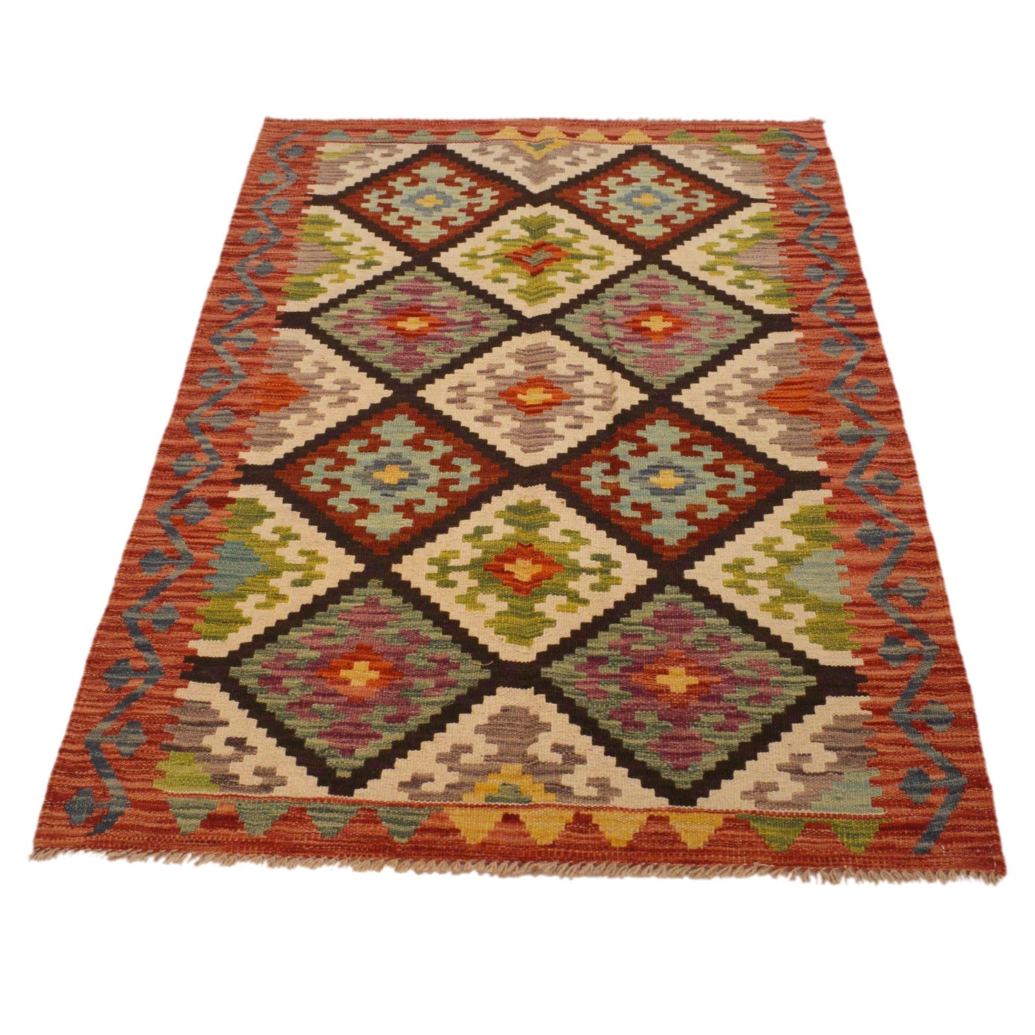 Handmade Afghan Vegetable Kilim 3' 2" x 5' 1" - No. AL24588