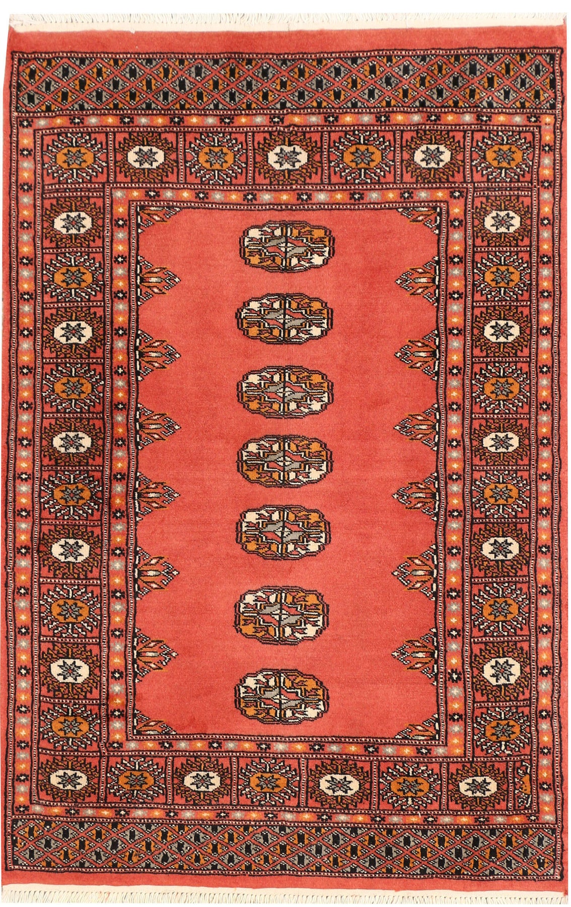 Salor Bokharas rugs are believed to be originally made by the Salor tribe who lived just north of the Northern Afghan border. These rugs are beautiful and known by red shades with a symmetrical row of octagons. Every octagon generally includes a smaller octagon or diamond within its border. The interior sides of each octagon generally feature one to three flowers.
